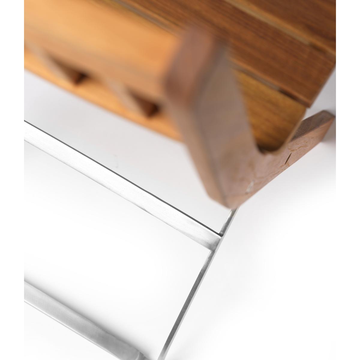 I love this chair for its clean, timeless design that combines natural teak with stainless steel accents, making it both durable and stylish. It's perfect for adding a touch of Scandinavian minimalism to small outdoor spaces or balconies, especially in contemporary or coastal-inspired interiors. Practical styling tips include pairing it with lightweight cushions for added comfort, and styling it alongside neutral or pastel tones to enhance its natural wood finish. Its foldable feature makes it wonderfully versatile for compact spaces, allowing you to easily stow it away when not in use, without compromising on aesthetic appeal.
