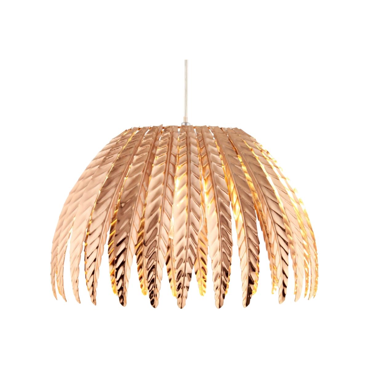 Stunning rose gold pendant with fern leaf design. Update any room with this gorgeous rose gold pendant with fern leaf design. The Fearn pendant is ideal for any room, giving off a warm, comforting glow when lit. With a beautiful finish, this pendant is suited perfectly to any room boasting copper or rose gold features, however, would be an amazing burst of colour to any otherwise monocoloured room.