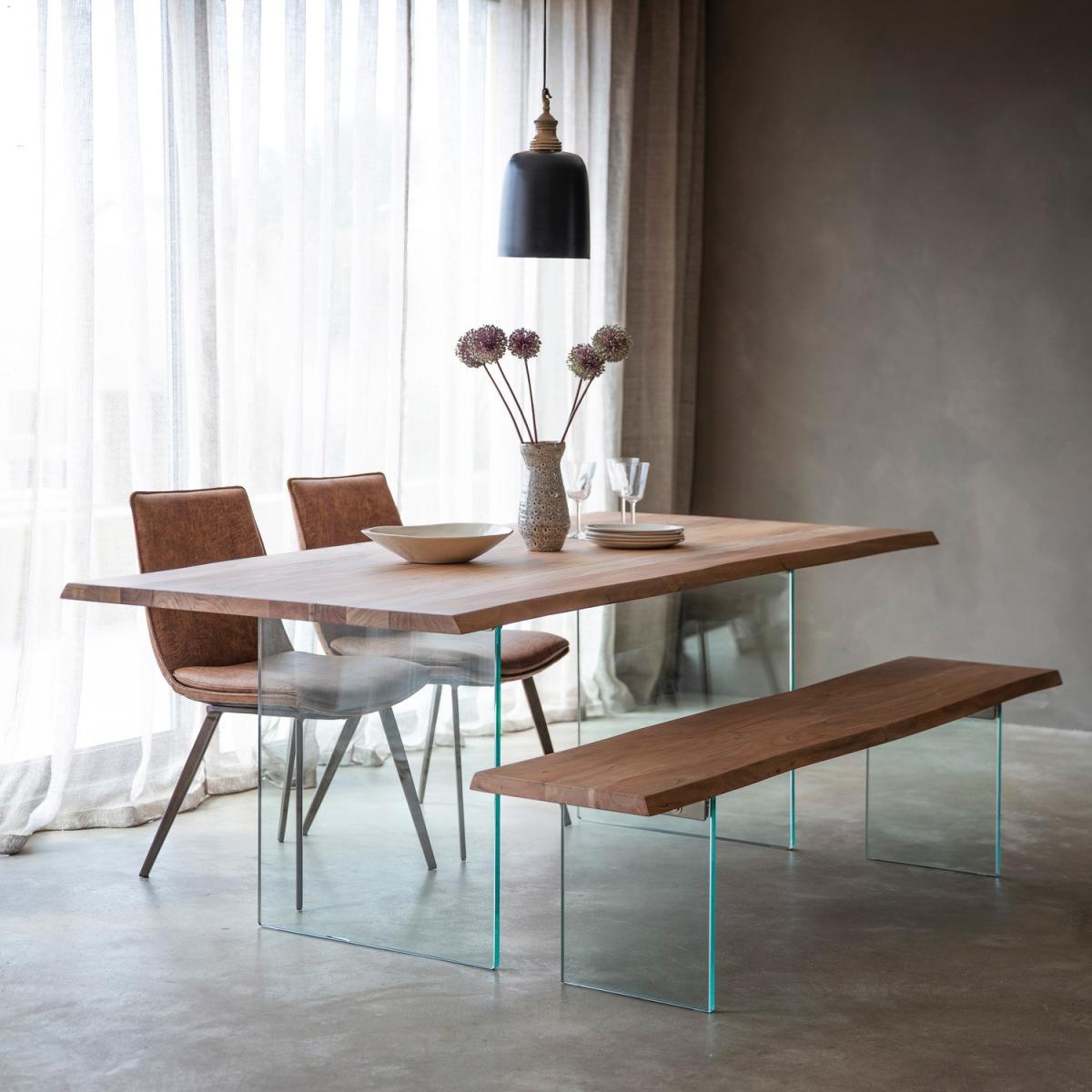 Dimensions W200x H77x D100 cm. The Fearne dining table is a striking piece of contemporary furniture that will integrate perfectly with cool and neutral colour schemes. The simple yet bold design features a neutral solid wood top with smooth edges and finished with stylish elegant glass legs that will definitely make your dining room stand out. Perfectly paired with the Fearne dining bench which is also available from this range creating a beautiful and unique addition for your dining room. Features. A striking piece of contemporary furniture Perfect with cool and neutral colour schemes. Neutral solid wood top with smooth edges. Finished with stylish and elegant thick glass legs. Matching items are available in the Fearne range. Assembly required..