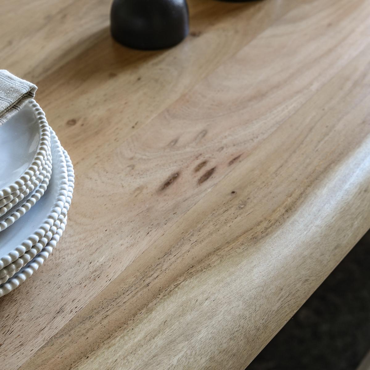 Turn every gathering into a feast with the Feaster Dining range. The acacia wood dining table top not only serves as functional surface but also showcases the artistry of the wood grain and the sleek iron frame adds an industrial feel.