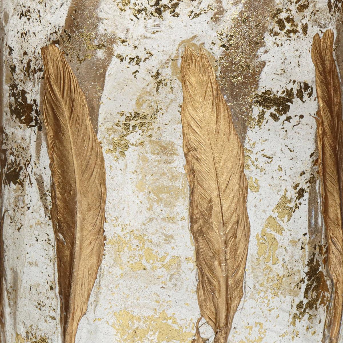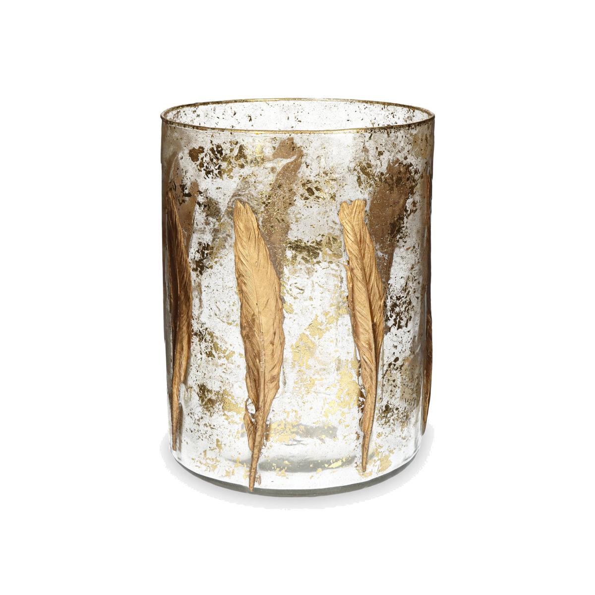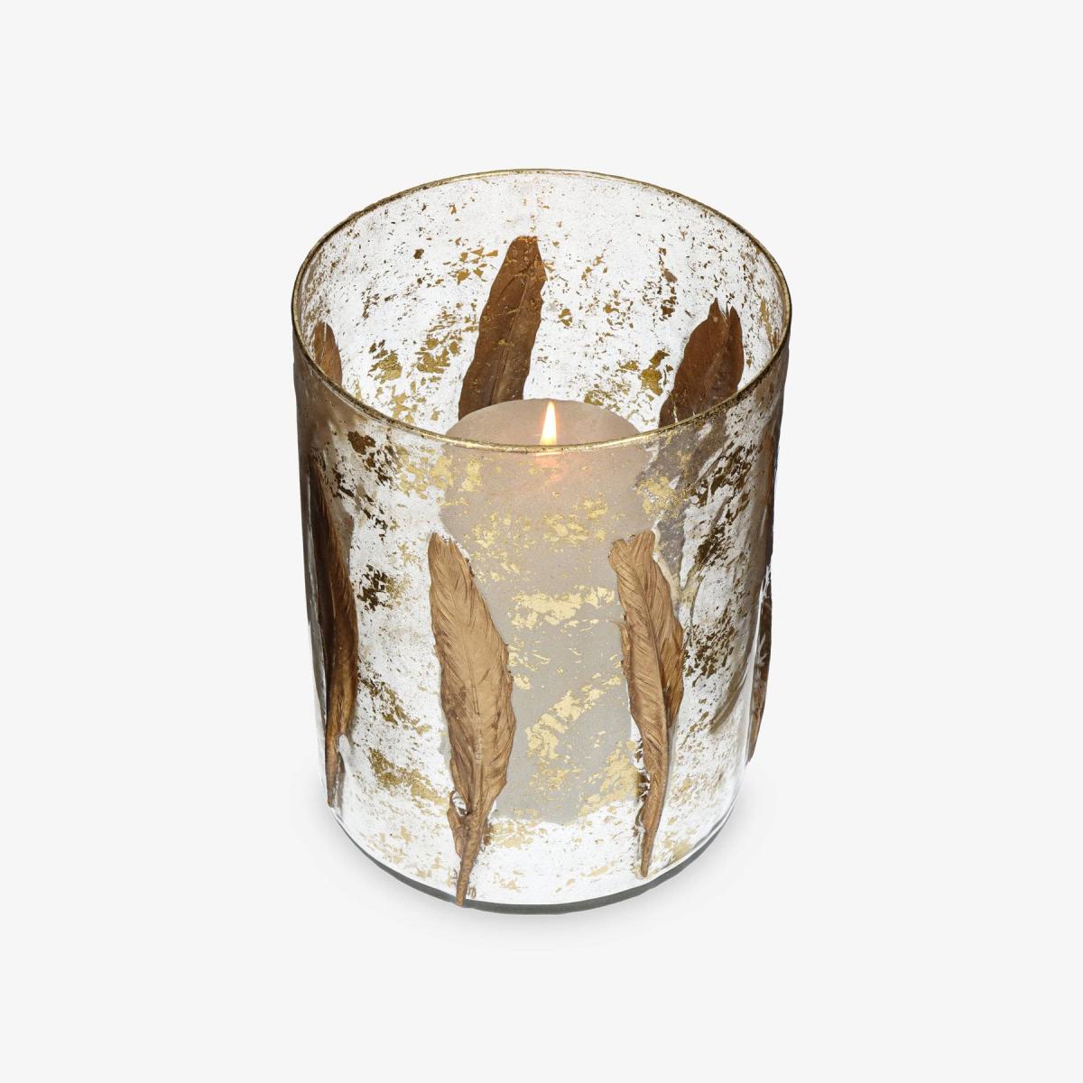 Decorate your home with the ambient light of our exquisite Feather candle holder. Create a golden ambiance with this 20cm high glass candle holder's elegant lyrical design that is perfect for setting on a coffee table or mantelpiece. To create a welcoming, intimate atmosphere, place a tealight or small candle inside the holder and watch its golden light shimmer.