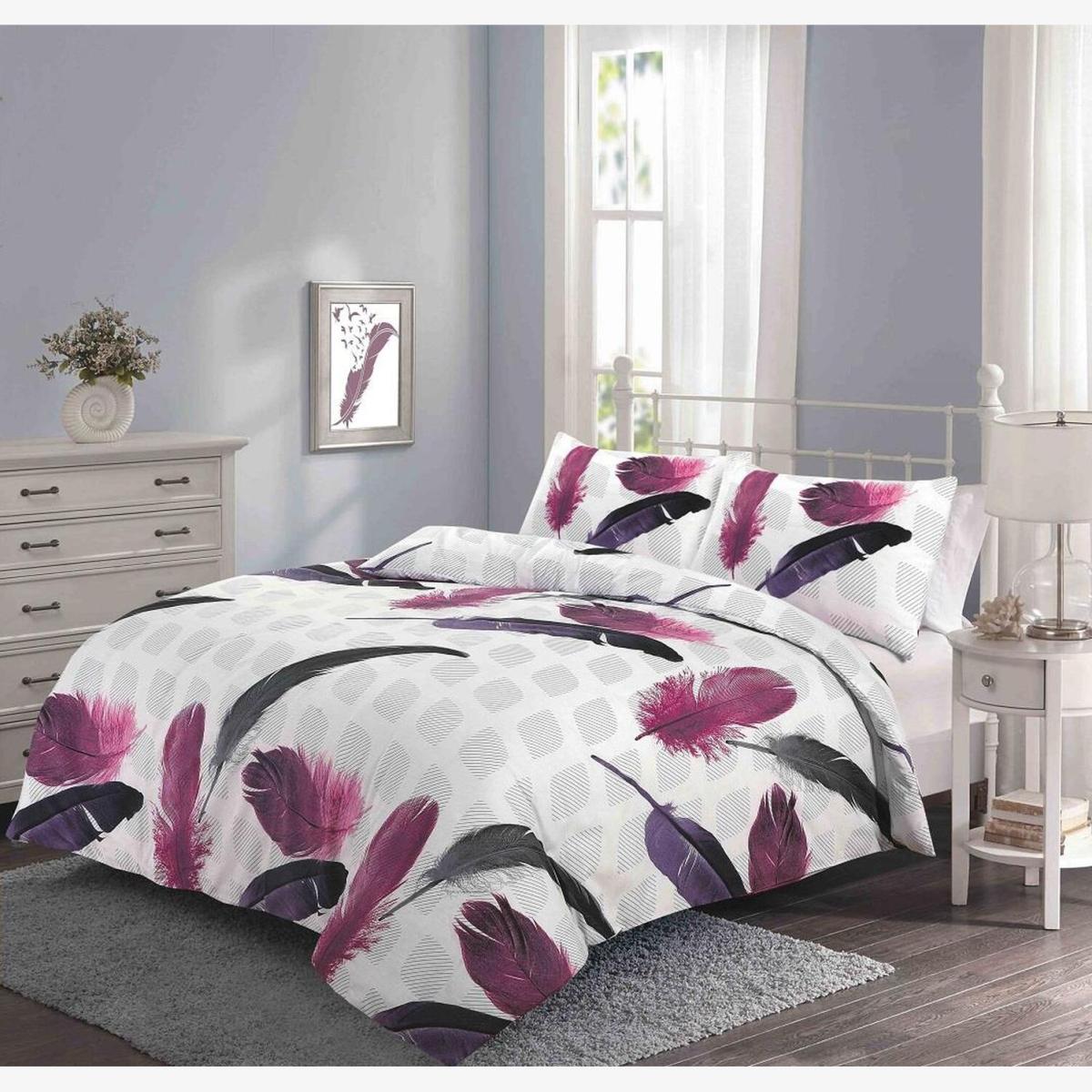 I love this duvet cover set for adding a splash of colour and pattern to a bedroom, especially in a neutral or monochrome space. Its purple tone is versatile, working well in both modern and traditional interiors, and the feather design introduces a tactile, nature-inspired element. For styling, pair it with crisp white or soft grey bedding underneath to let the pattern stand out, and keep accessories minimal to avoid clashing. It’s perfect for creating a fresh, contemporary look in a guest room or master bedroom, especially when complemented with simple linen or matching cushions for a cohesive feel. Practical tip: so long as you opt for a duvet cover with easy-care fabric, it’ll look great and stay vibrant after multiple washes.