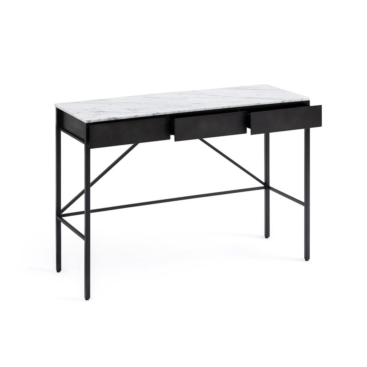 I love this table for its clean, modern mix of materials - the sleek white marble top combined with black metal creates a versatile piece that works well in contemporary and minimalist interiors. It’s perfect for a hallway or at the front of a living space, offering both function and style. Practical styling tips include keeping the surface uncluttered with a statement lamp or a piece of sculptural art, while the lower shelf can hold small baskets or decorative essentials to maximise its functionality without disrupting its streamlined look. It’s a real chameleon that can effortlessly blend into various colour schemes and design themes.