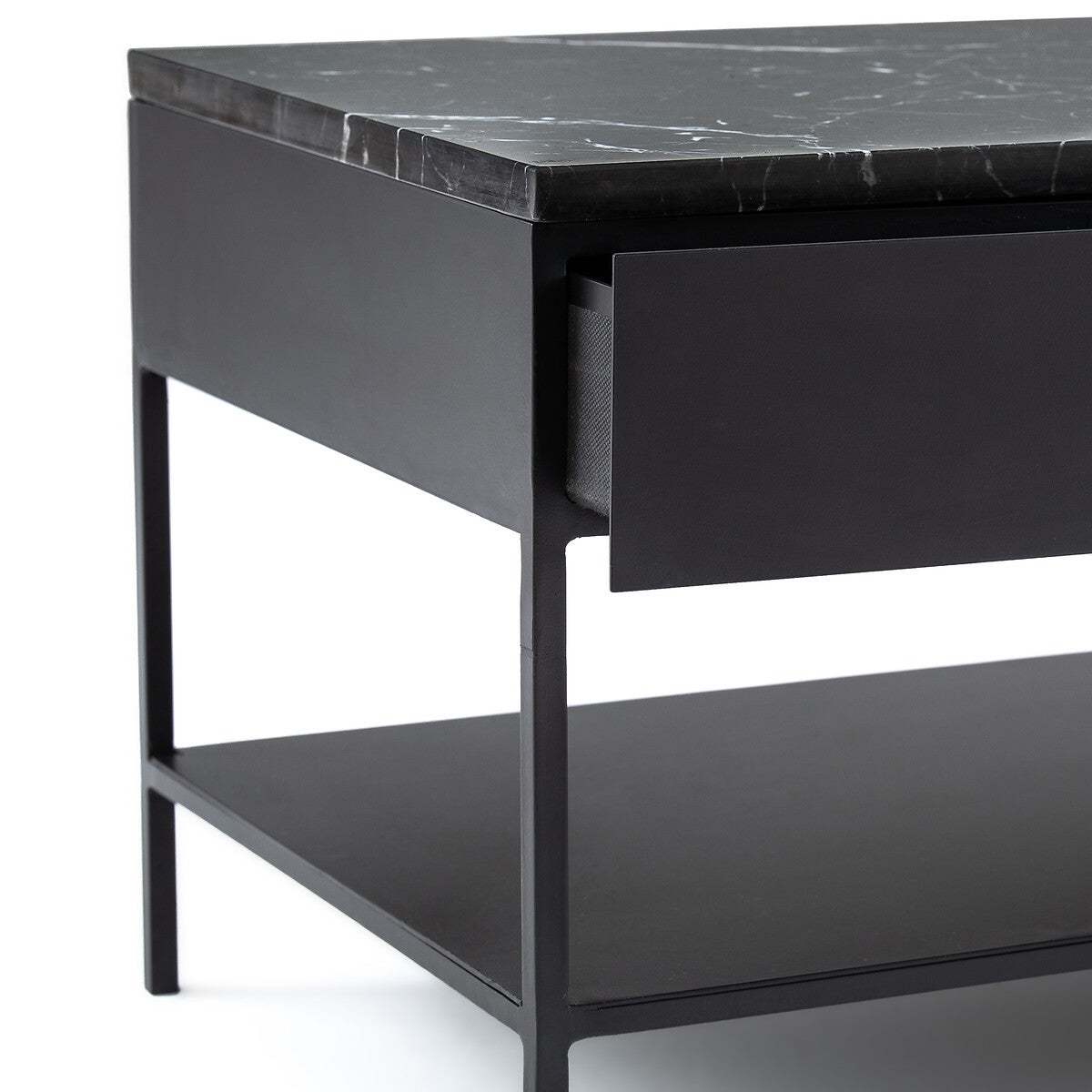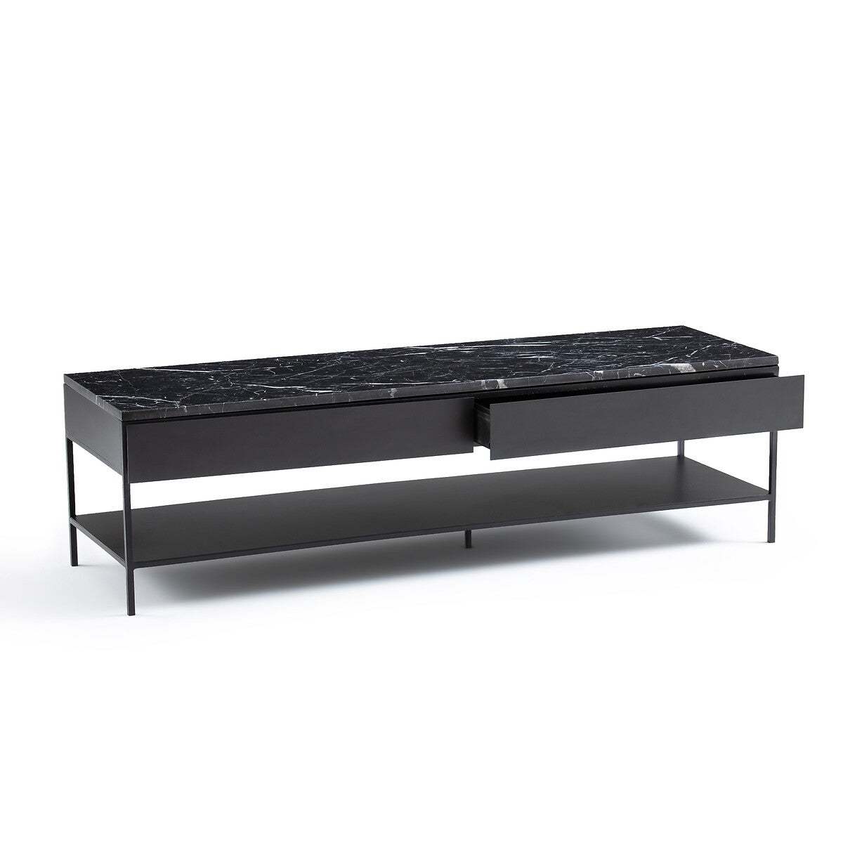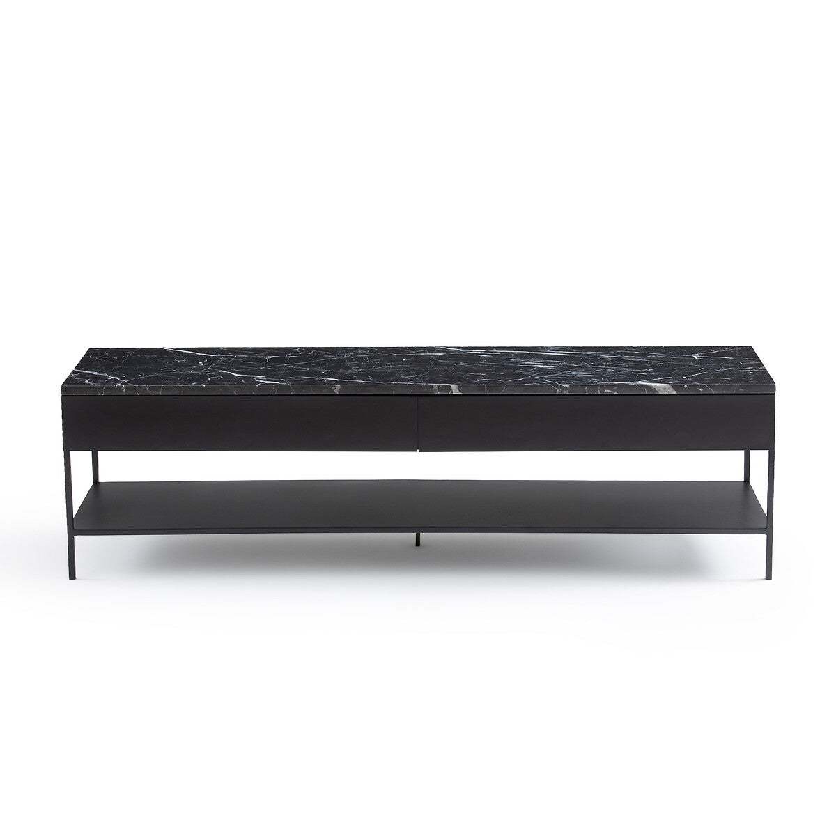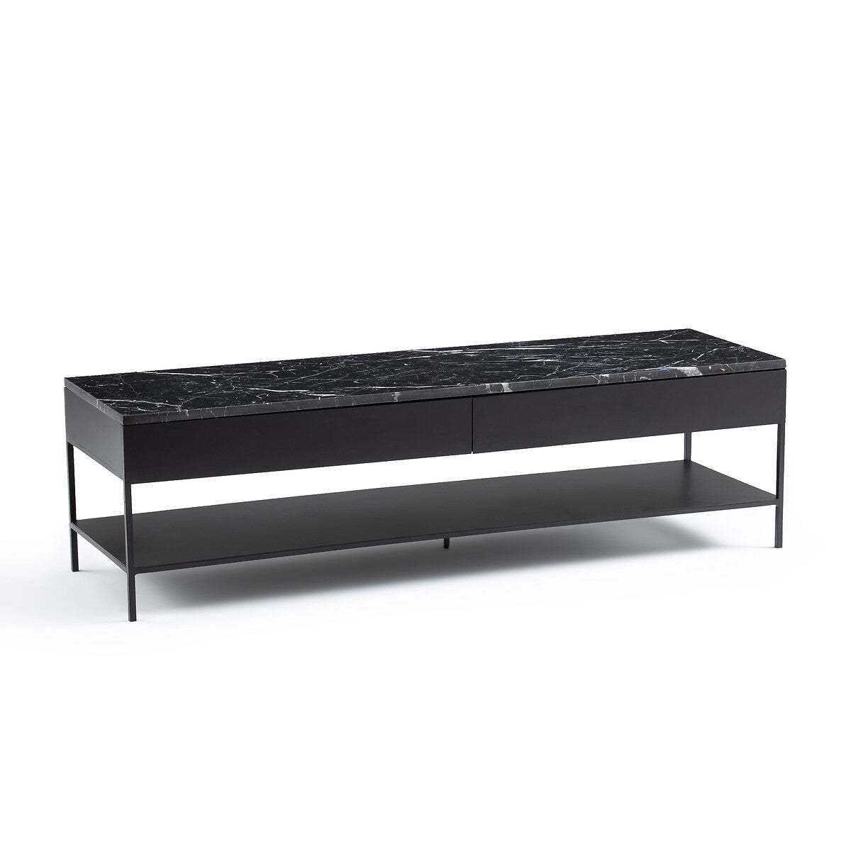 The Fébée TV unit. An alliance of marble and metal brings this TV unit to life for an elegant finish, with storage from two small drawers.