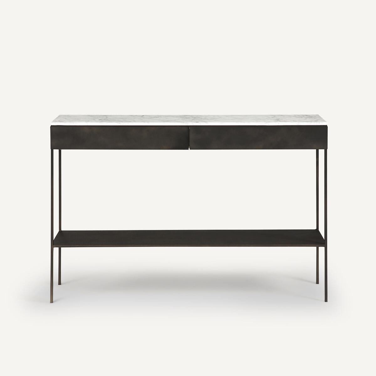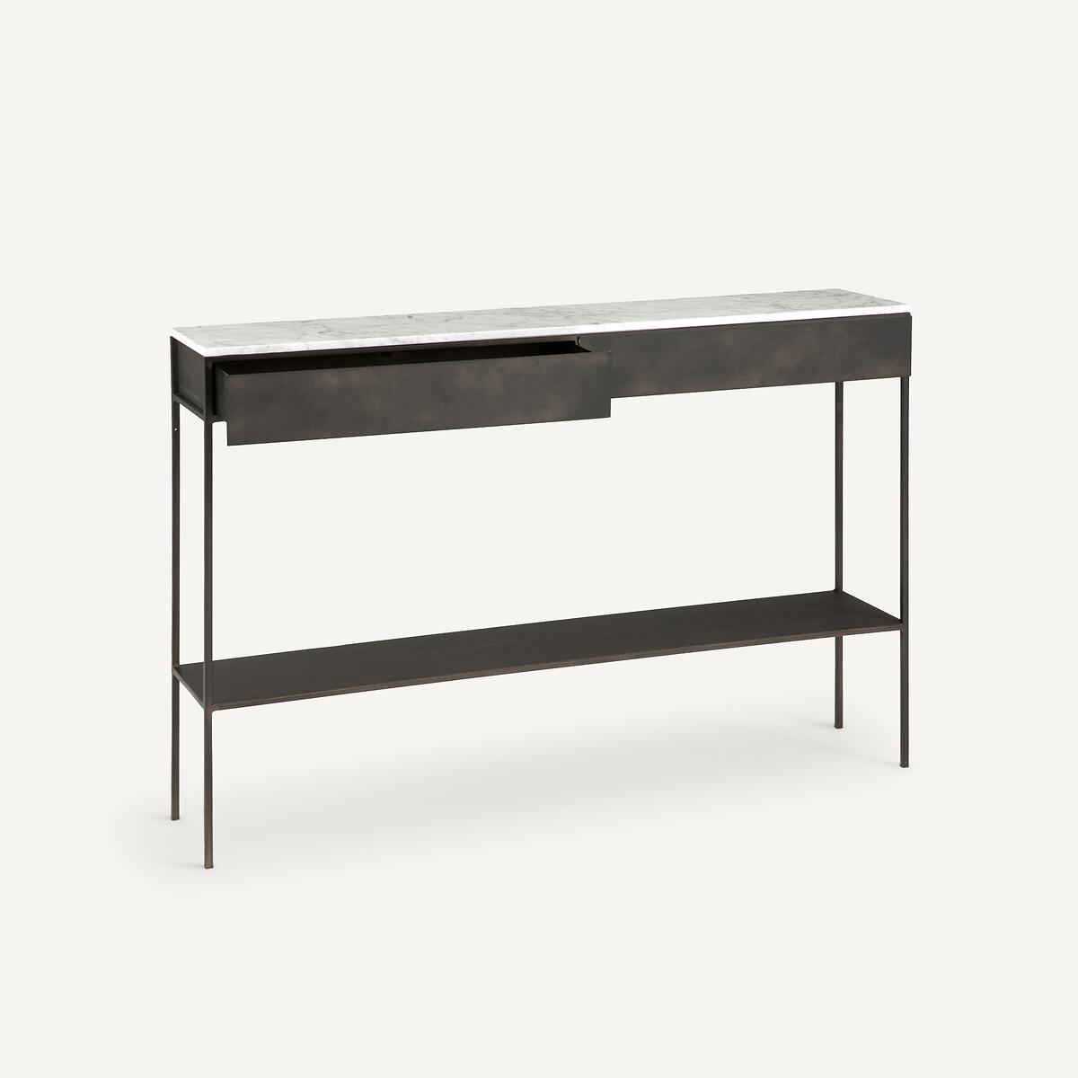 A perfect combination of marble and aged-effect metal, the Fébée console table is an AMPM Iconic. An exclusive creation anchored in the brand's DNA.