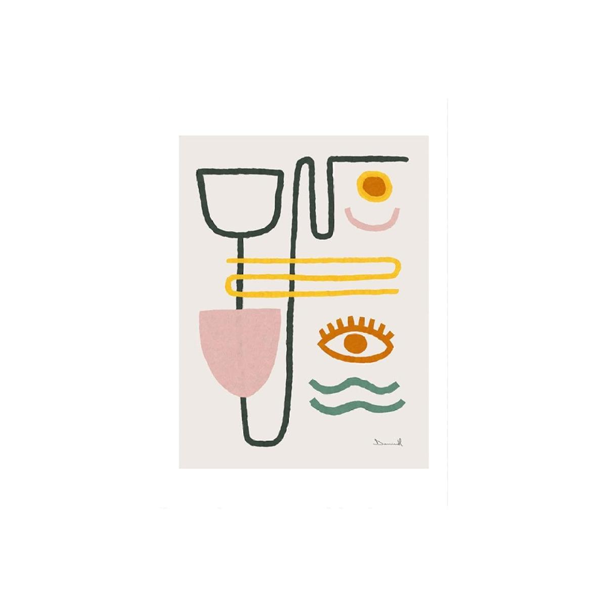 I love this abstract print because of its bold, simple shapes and playful colour palette, which provides a contemporary touch without overwhelming a space. It works particularly well in modern or minimal interiors, where its graphic elements can add visual interest without clutter. For styling, consider pairing it with neutral walls and matching accessories to let the artwork stand out, or place it above a sofa or dining table for instant visual impact. A larger size like A1 makes it ideal for creating a focal point, especially in open-plan living areas or spacious hallways. Framing it simply in a sleek black or white frame can help refine the look, or go for an unframed finish if you prefer a more relaxed, gallery-style vibe.