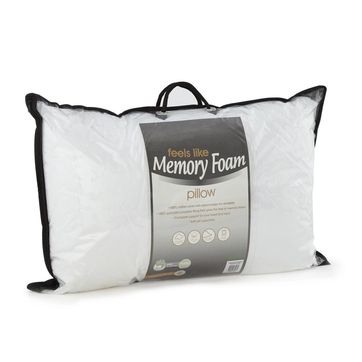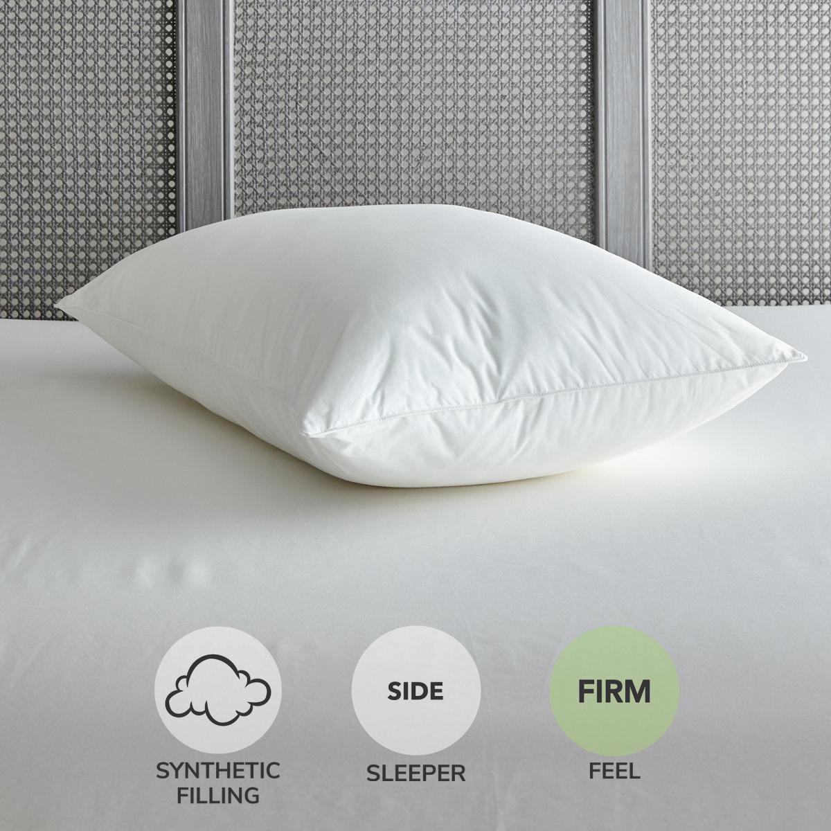 Covered in a crisp 100% cotton, this firm pillow has a high-quality polyester filling that feels just like memory foam and offers extra support to your head and neck. Finished with piped edges for durability, this pillow is great for those who sleep in a side position and is machine washable for easy care. Contains a blend of recycled fibre.
