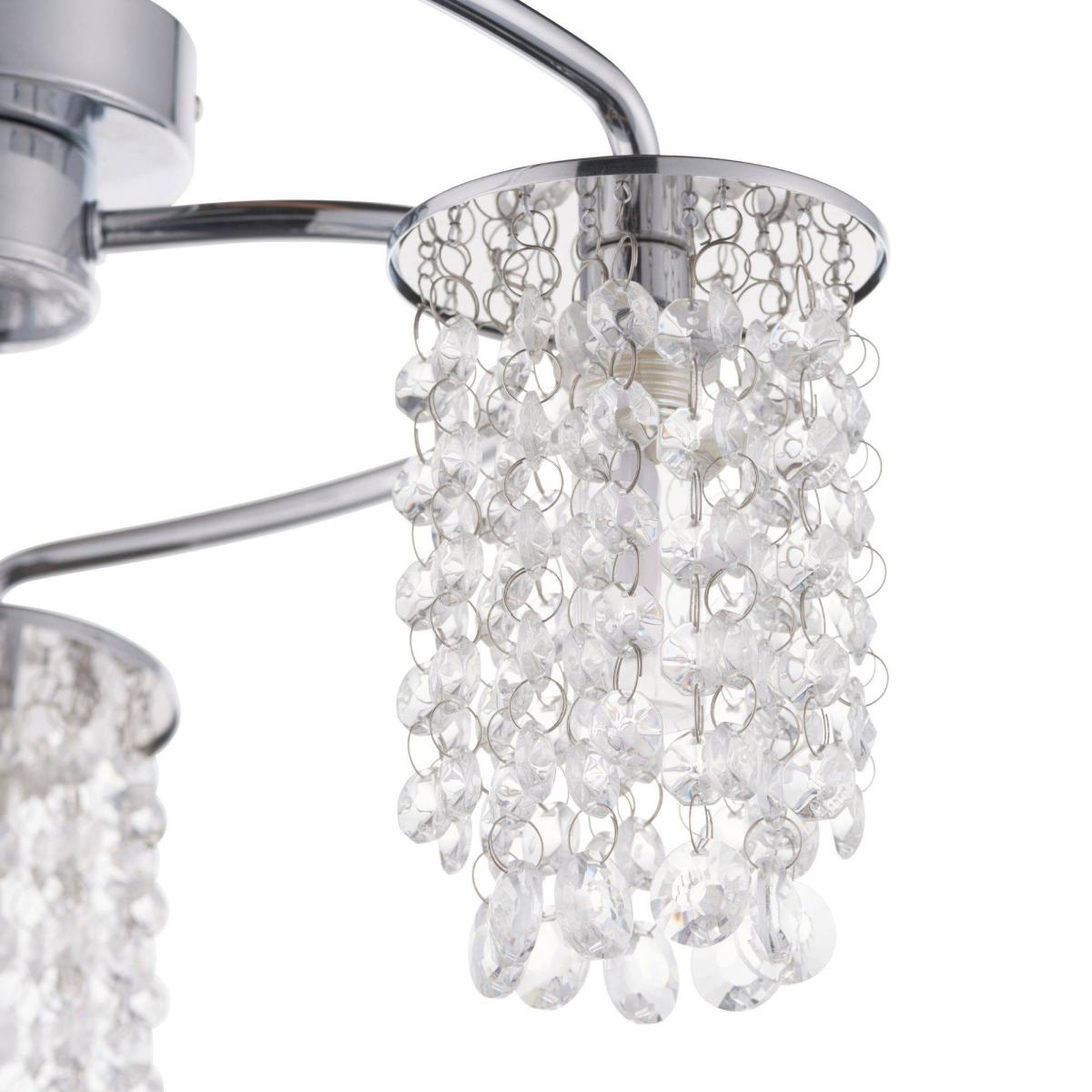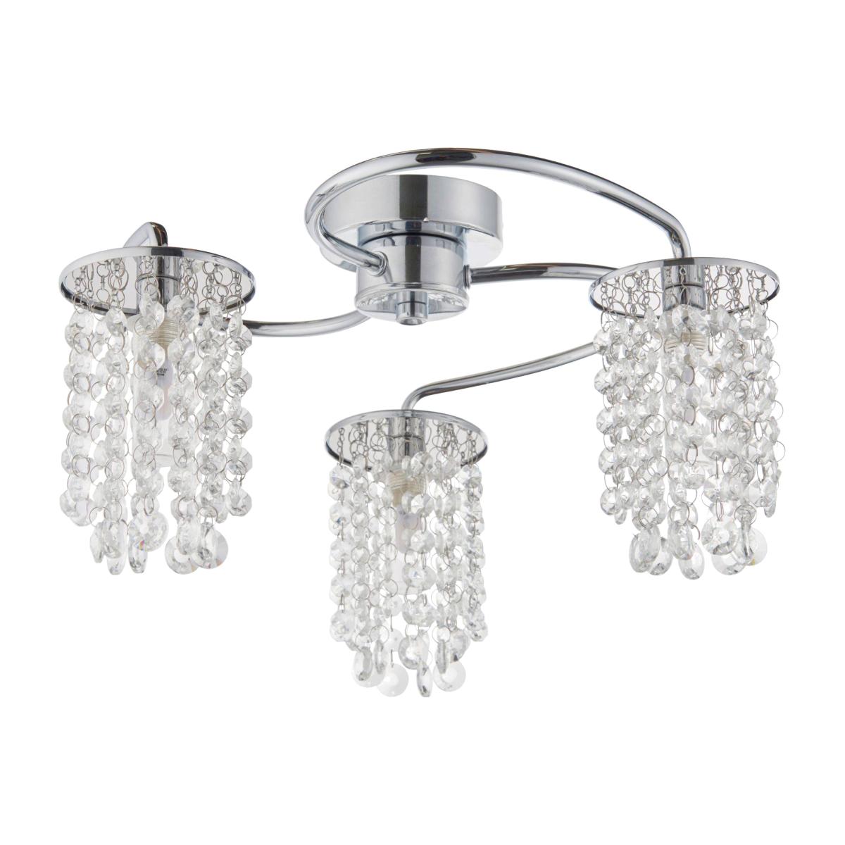 Glamorous ceiling light boasting a polished chrome finish with crystal droplet shades. A stunning addition to your home, the Felecia Semi-Flush Ceiling Light is a beautiful fitting from Pagazzi Lighting. Finished in polished chrome, the light features 3 decorative shades with cascading glass droplets, offering a sparkling effect when lit. It is ideal for use in living rooms, dining rooms and bedrooms. Pagazzi recommends using our 3w LED G9 light bulbs which are a great alternative to standard halogen light bulbs.