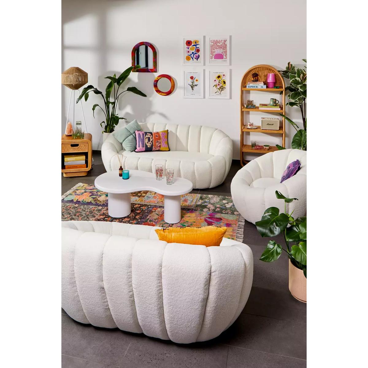 Deep bucket-style armchair with soft quilted detailing throughout. Circular silhouette chair upholstered with soft fleecy cushions and a solid base. Just add your favourite cushion and curl up comfy. *Online return only. This item cannot be returned instore. Please note furniture items currently cannot be shipped to Northern Ireland or The Republic of Ireland. Delivery of large furniture items may take 1-2 weeks and are therefore not eligible for Next Day Delivery.* **Content + Care** \- Textile, Metal \- Wipe clean **Size** \- Dimensions: L:93cm x W:94cm x H:68cm \- Shipping dimensions: L:98cm x W:99cm x H:75cm