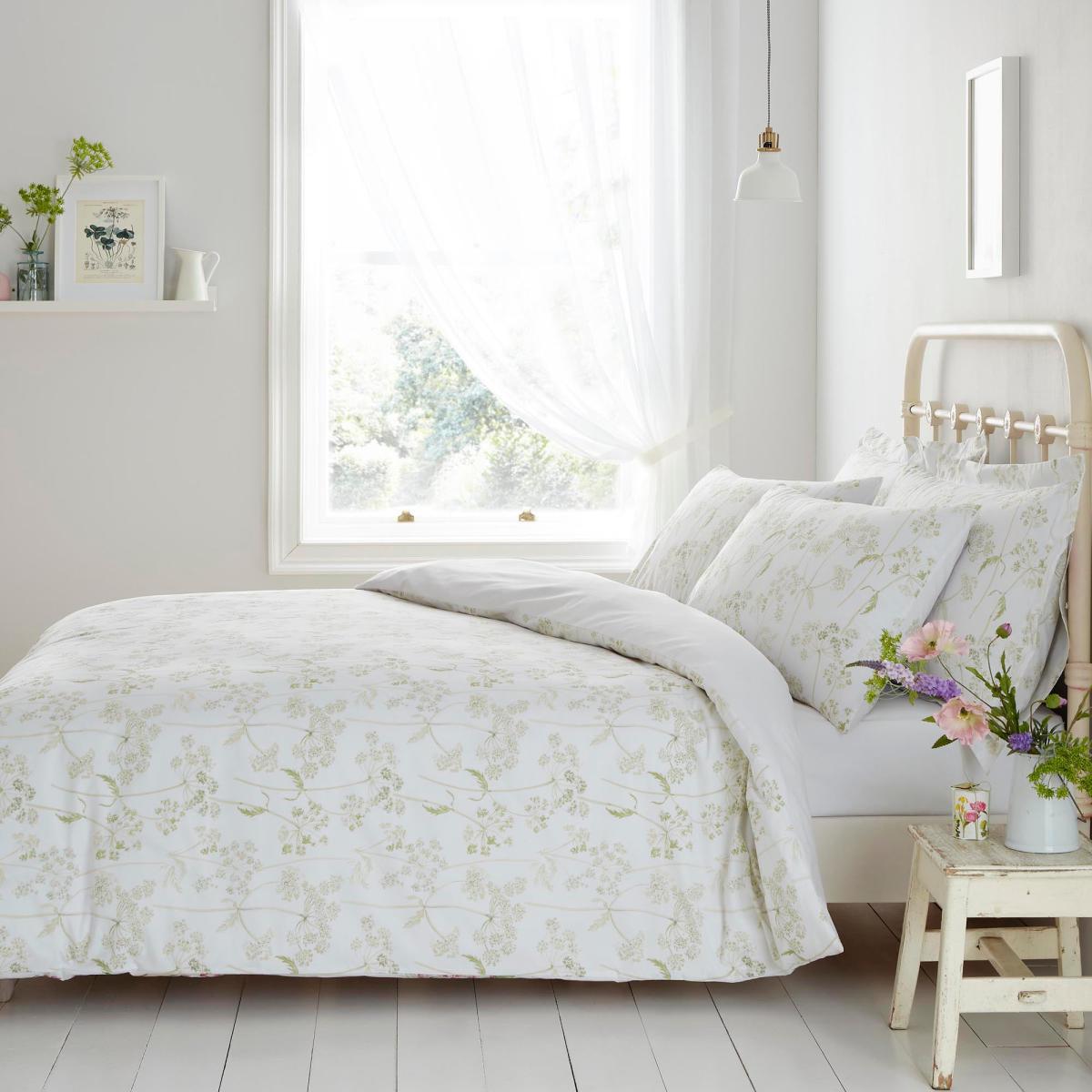 Felicity White Floral Reversible 100% Cotton Duvet Cover and Pillowcase Set White