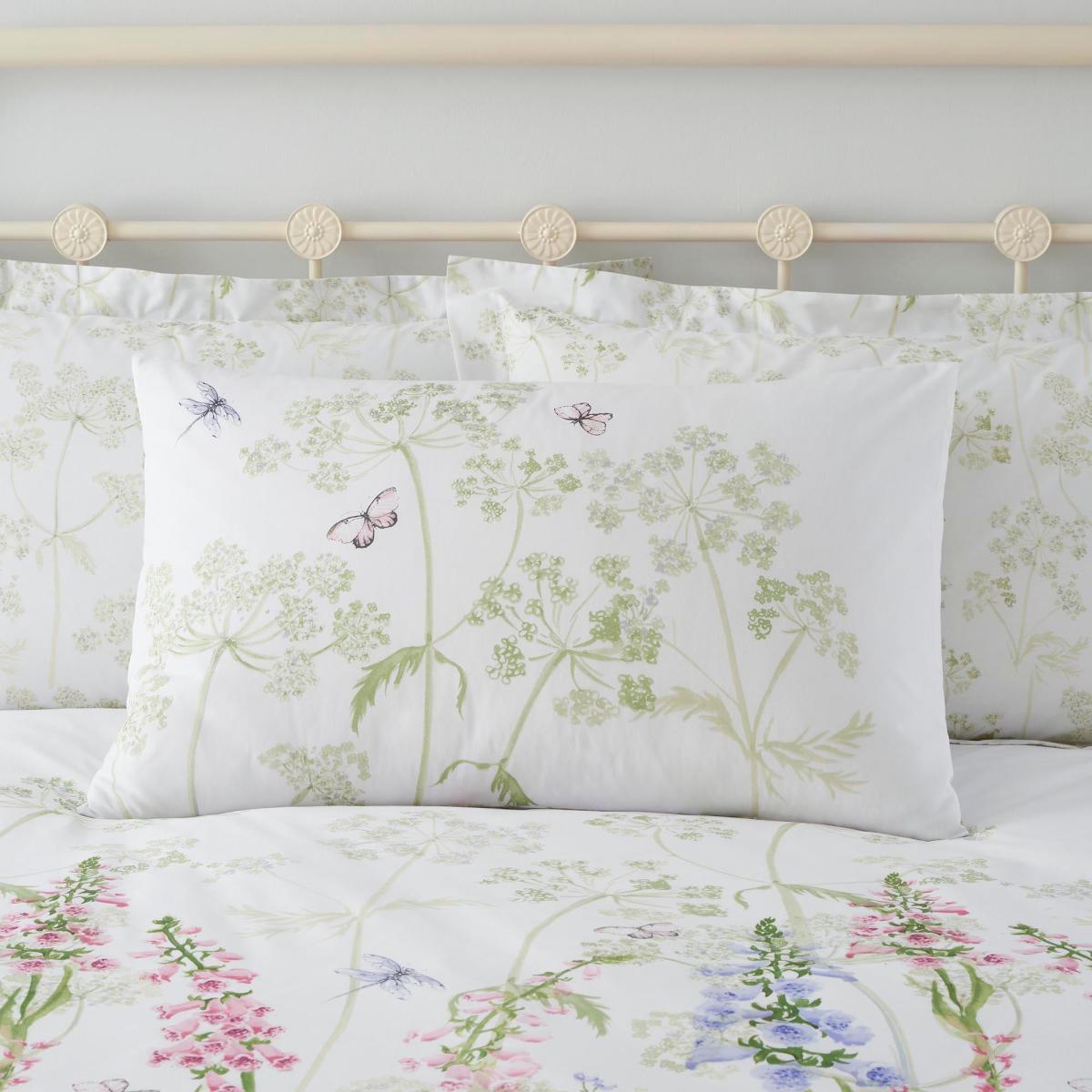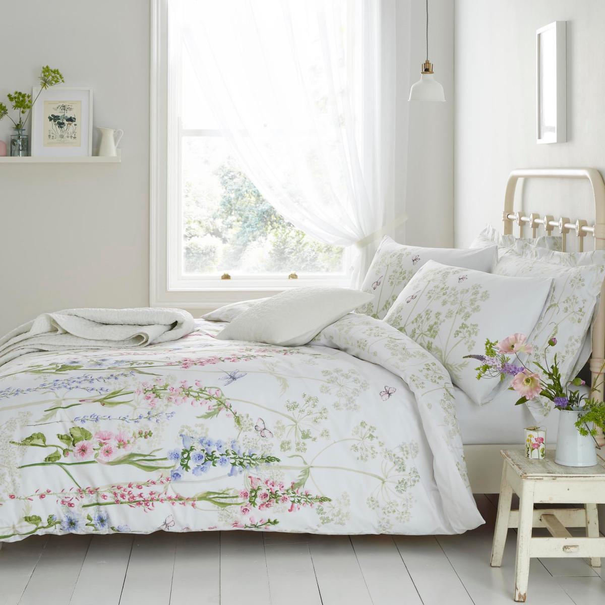 Decorated with a pretty floral design with butterflies and dragonflies entwine on a fresh white background, our felicity duvet cover and pillowcase set features a fully reversible design for an easy colour change. Made from 100% cotton with a 180 thread count, this modern and stylish bedding set promotes a good nights sleep and is machine washable for easy care. Coordinating accessories are available to purchase separately.