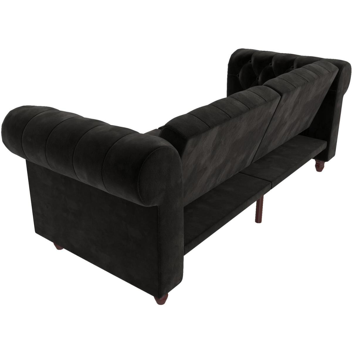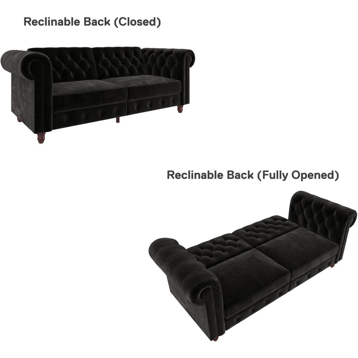 Bring refined structure and luxurious comfort to your living room with the DHP Felix Chesterfield Sofa Futon. Inspired in the Victorian era, the Felix proudly stands out with its diamond button-tufted details, wooden legs and plush rolled arms. The luxe velvet upholstery adds a vintage charm to this piece, bringing it all together. It is made with sturdy wood and has a multi-functional design that is perfect for small homes. The split backrest reclines with one push and pull, allowing you to sit, lounge and sleep. Whats more, the seat is made with pocket coils, providing superior comfort. Enjoy a cozy afternoon reading a book, slouch back for a quick midday nap or lay the back completely flat for overnights guests. Available in fashion-forward colors, this sofa assembles effortlessly and wipes clean with a damp cloth. Adored by many interior enthusiasts for its class and sophistication, the Felix Chesterfield Sofa Futon is a must-have for your home!