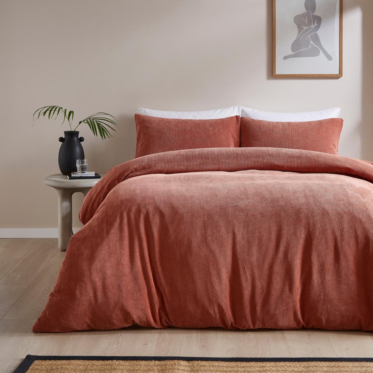 Felix Corduroy Duvet Cover and Pillowcase Set Terracotta