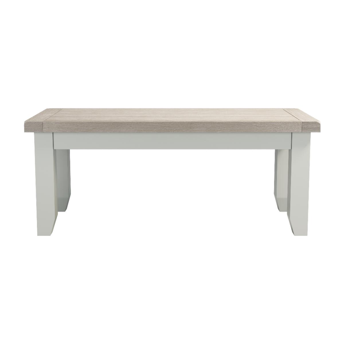 Although part of a wider Felix range, this bench is versatile enough to match with many styles of table, or be a stand alone piece. Constructed using solid oak, pine and oak veneer and finished with a gentle grey paint - the Felix bench is an elegant yet functional piece which will fit seamlessly in any contemporary home. Heat resistant, scratch resistant and boasting a sturdy cross style support - the bench makes a solid addition to a wide range of rooms. Sturdy solid oak legs1100mm in length. Countryside-chic style, ideal for the modern home. Oak, pine and oak veneer construction