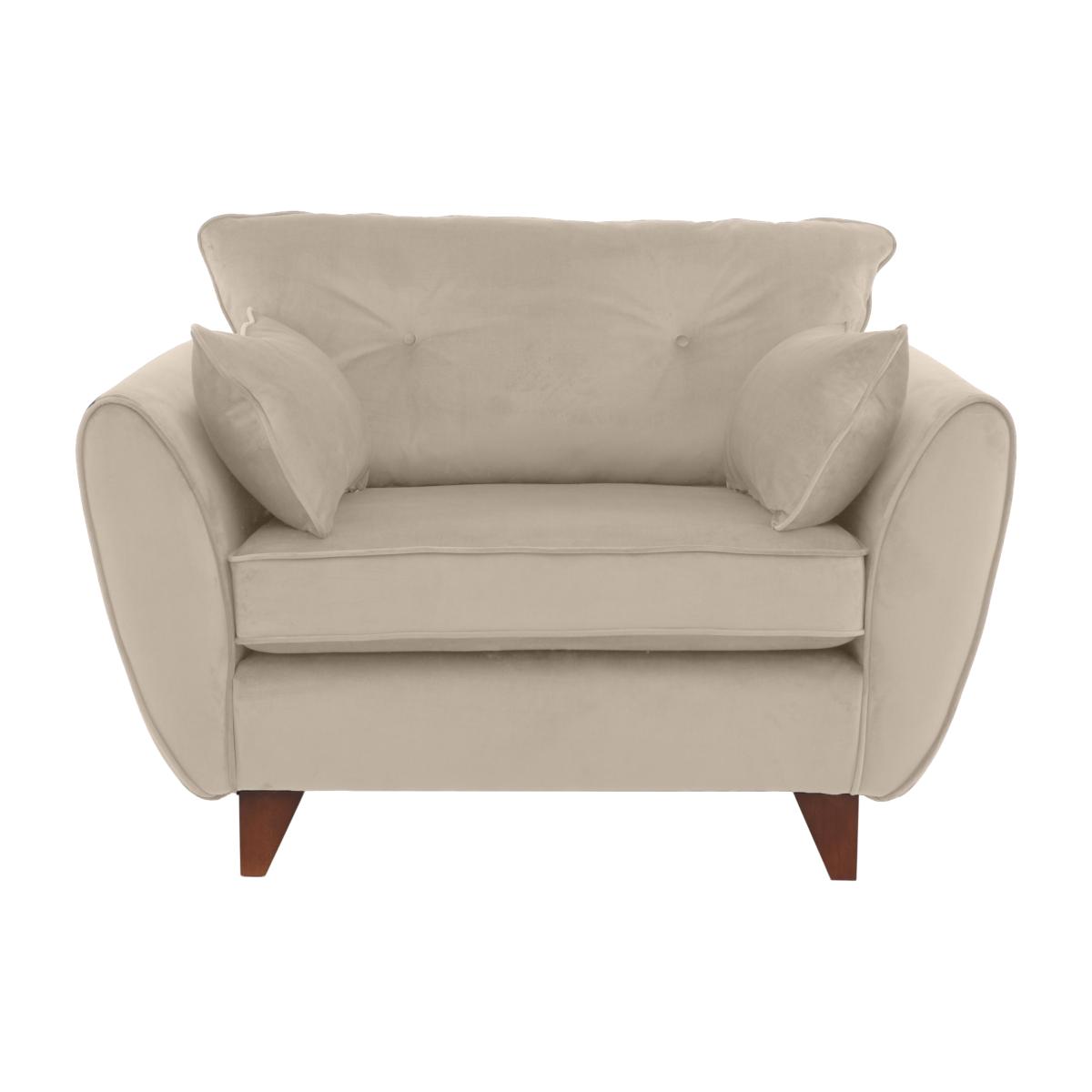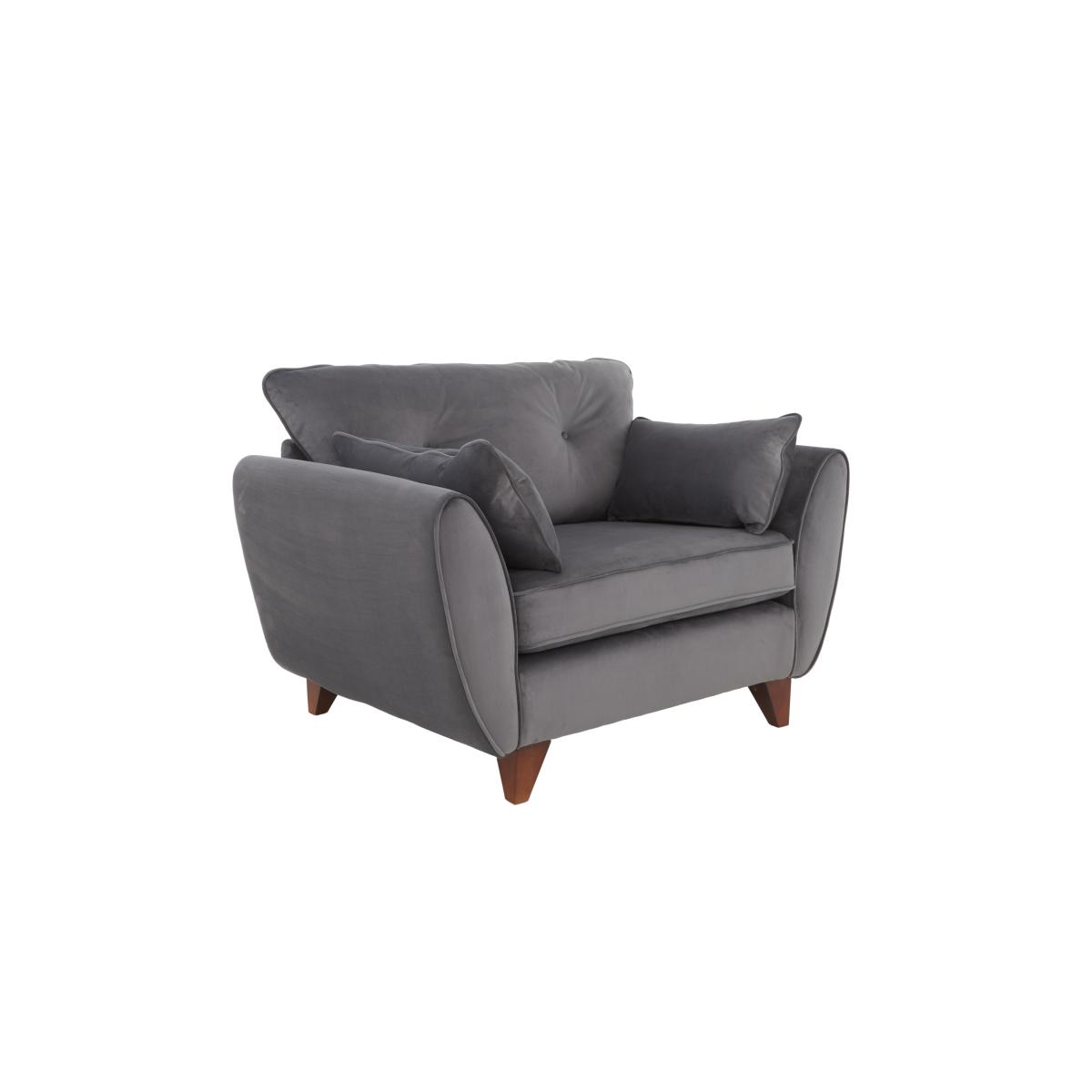 There’s a hint of retro charm about the Felix range, which is just one reason it’s so easy to fall in love with. Made with care in the UK, this Scandi-inspired sofa takes your relaxation to a whole new level. One sit on its inviting seats and you’ll see what we mean. The cushions are reversible so it’s easy to keep them plump while the plush velvet upholstery feels wonderfully soft. Elegant details like the deep-buttoned cushions, gentle sloped arms and dark wood feet give this sofa its chic finish. Designed to turn heads and keep you comfy, these retro Scandi sofas and chairs make chilling look good. Perfect for snuggling up or stretching out solo, the Felix cuddle chair makes getting cosy look chic with its unique blend of retro style and Scandi design. Why you'll love it. A seriously good-looking retro cuddle chair with sink-into cushions. Its chic Scandi silhouette will tick all your style boxes. Plush velvet upholstery for extra comfort. Comfy cushions you can’t help but sink into. Cushions are reversible, so it’s easy to keep them plump. Available in a wide range of chic shades. Enjoy even more comfort with 1 bolster (included). Made with care in the UK. Exclusively available at Furniture Village. What you need to know. Medium comfort level. Seat suspension: Steel spring. Seat cushions: Foam. Back cushions: Foam. Dark wood feet are removable. Some fabrics can show wear on areas of more use or in direct sunlight. Please read our upholstery care guide for more advice. Part of the Felix range.