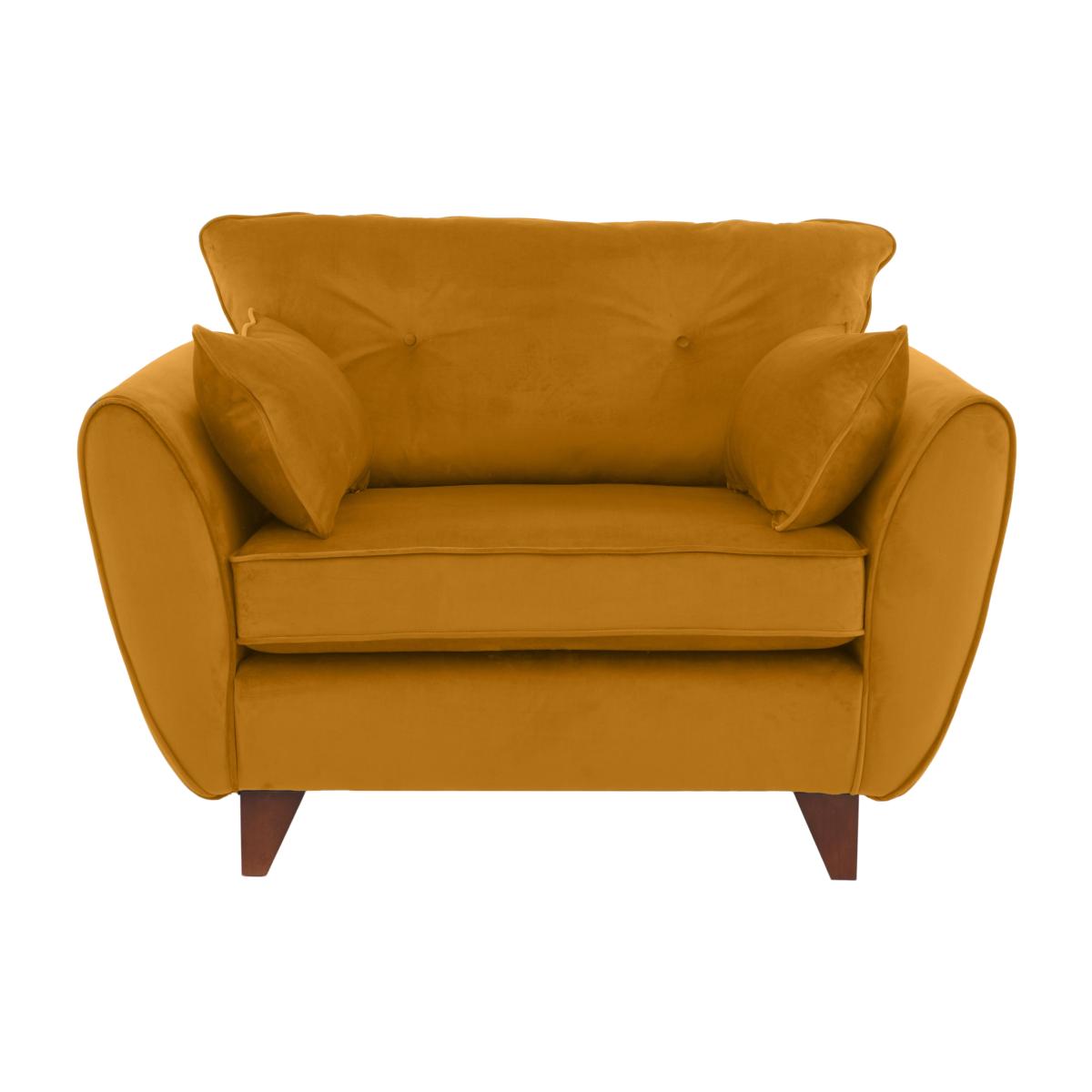 There’s a hint of retro charm about the Felix range, which is just one reason it’s so easy to fall in love with. Made with care in the UK, this Scandi-inspired sofa takes your relaxation to a whole new level. One sit on its inviting seats and you’ll see what we mean. The cushions are reversible so it’s easy to keep them plump while the plush velvet upholstery feels wonderfully soft. Elegant details like the deep-buttoned cushions, gentle sloped arms and dark wood feet give this sofa its chic finish. Designed to turn heads and keep you comfy, these retro Scandi sofas and chairs make chilling look good. Perfect for snuggling up or stretching out solo, the Felix cuddle chair makes getting cosy look chic with its unique blend of retro style and Scandi design. Why you'll love it. A seriously good-looking retro cuddle chair with sink-into cushions. Its chic Scandi silhouette will tick all your style boxes. Plush velvet upholstery for extra comfort. Comfy cushions you can’t help but sink into. Cushions are reversible, so it’s easy to keep them plump. Available in a wide range of chic shades. Enjoy even more comfort with 1 bolster (included). Made with care in the UK. Exclusively available at Furniture Village. What you need to know. Medium comfort level. Seat suspension: Steel spring. Seat cushions: Foam. Back cushions: Foam. Dark wood feet are removable. Some fabrics can show wear on areas of more use or in direct sunlight. Please read our upholstery care guide for more advice. Part of the Felix range.