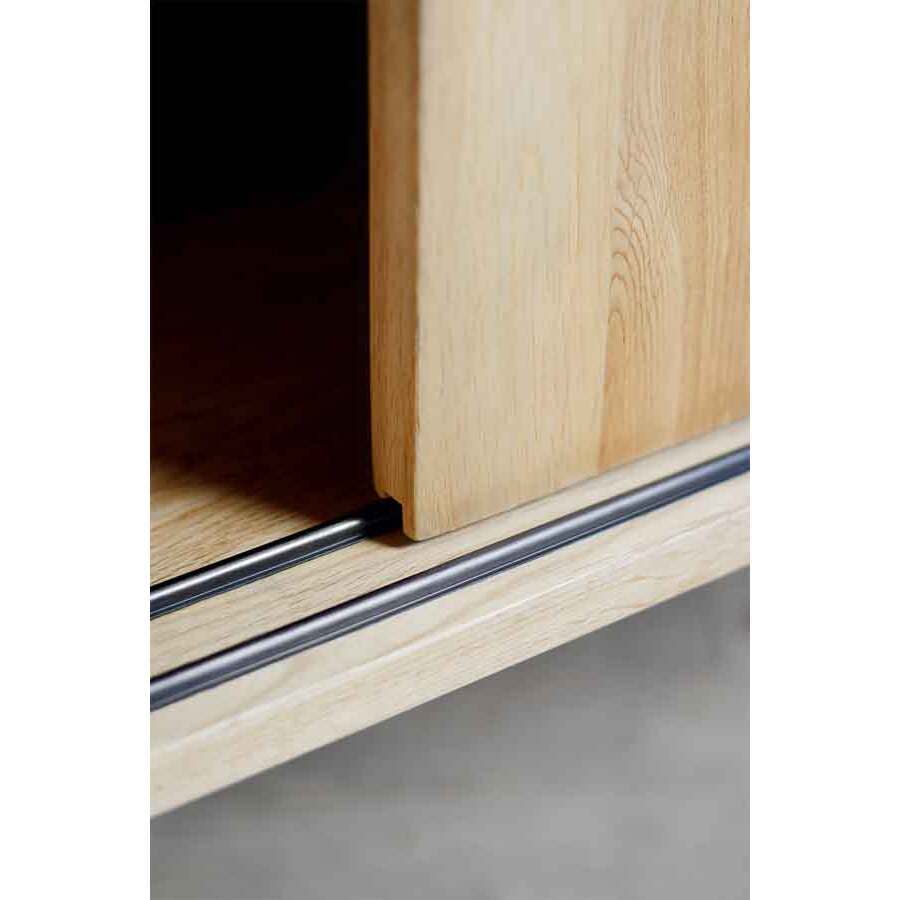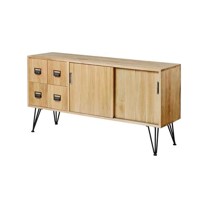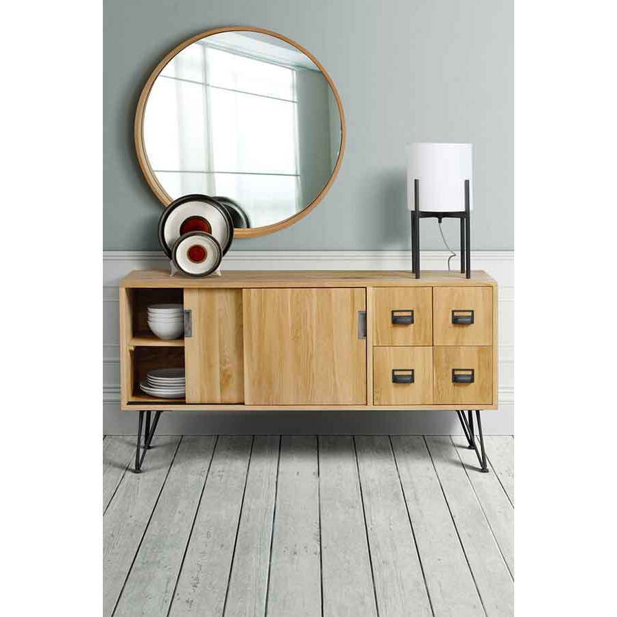 Felix is a contemporary furniture collection Inspired by early 20 industrial design. Characterful solid oak wood work - finely sanded and finished with stain lacquer. Striking wrought iron effect metalwork with concealed nylon feet (to help preserve your floor). A robust, durable and highly practical range of furniture. The media sideboard has been designed to securely accommodate televisions of up to 55 inches. The sliding door sections will house the bulkiest of media equipment, whilst the drawers will conceal DVD's, remotes, charging cables and other unsightly clutter. Suitable for use in contract and domestic situations. Exclusive to MY FURNITURE, designed and developed in England by our in-house team. Complete collection includes a TV unit, coffee table, side table, shelf, console table and 2 sizes of dining table. Requires assembly