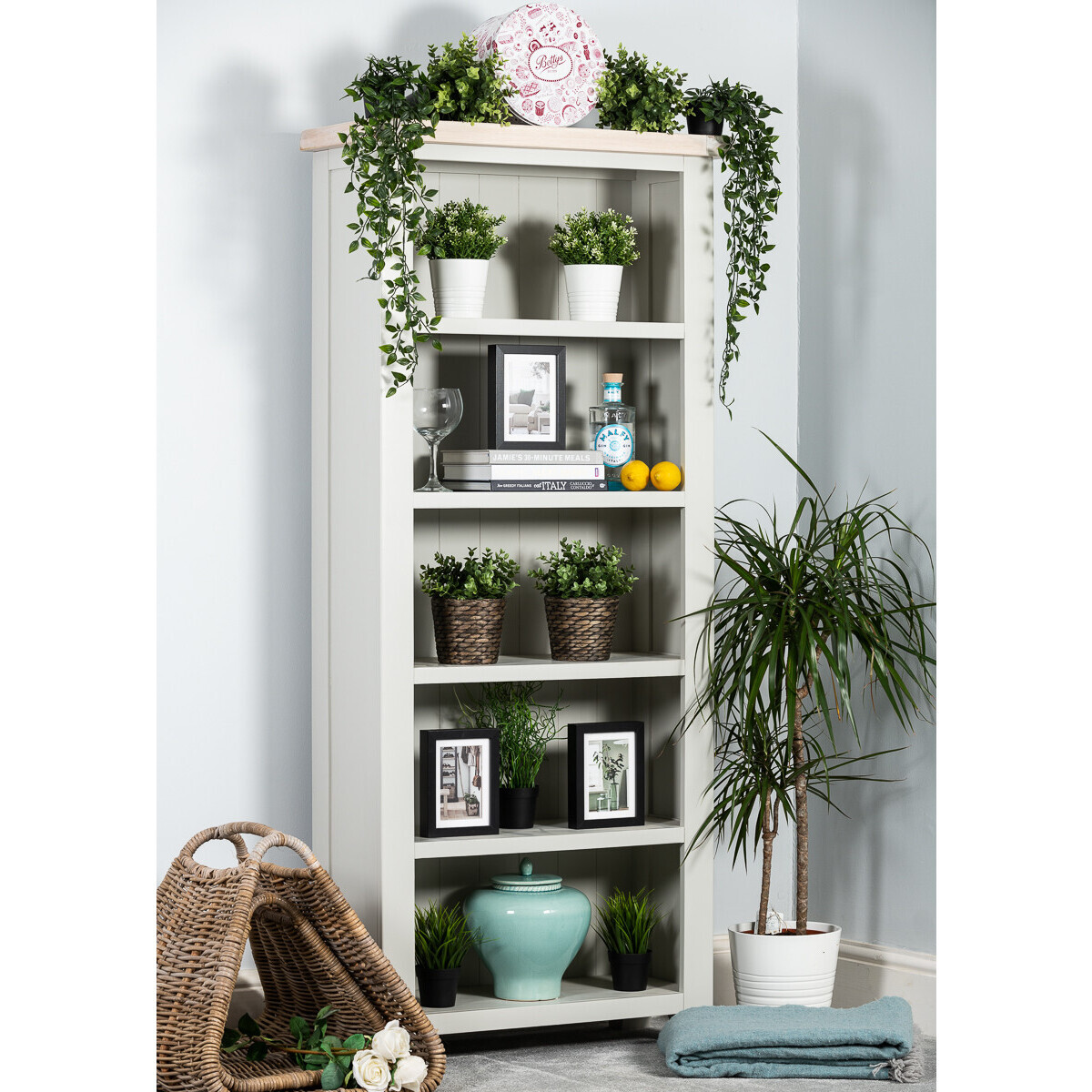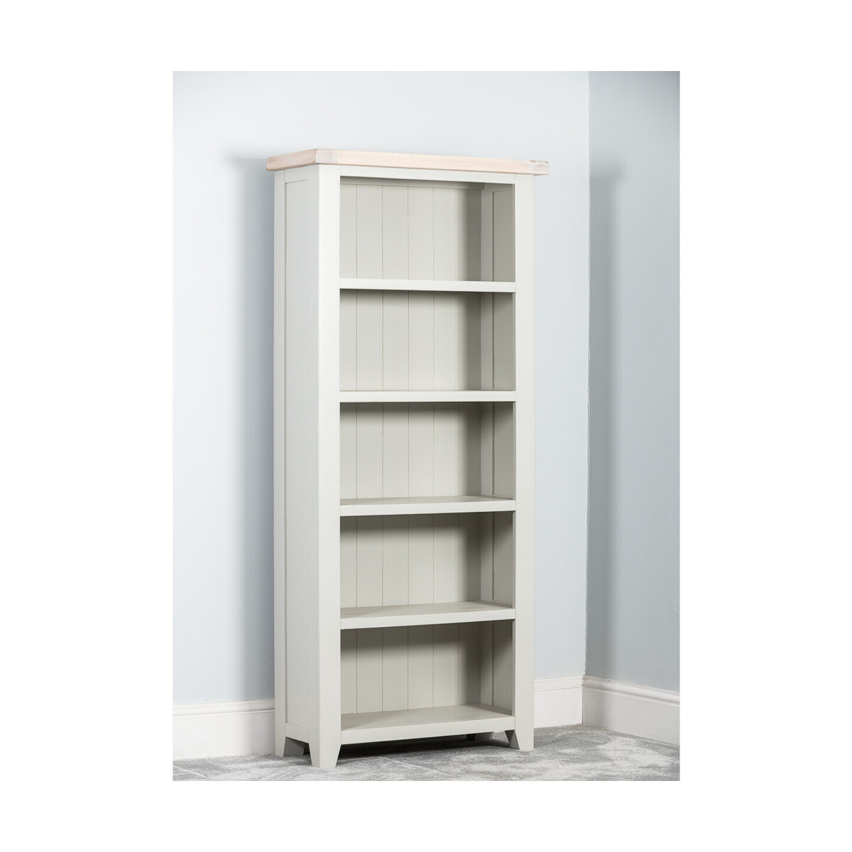 The classic Felix collection is crafted from a beautiful solid oak and finished with a high quality grey paint creating a contemporary look. The style is traditional - perfect for adding a touch of the old to a modern home or blending seamlessly with classic decor. The stunning large bookcase from the range has 5 deep shelves - ideal for books or photographs. Deep shelves - ideal for storage or display. Elegant styling which fits with a range of decor. Stunning oak, pine and oak veneer. 1800mm in height.