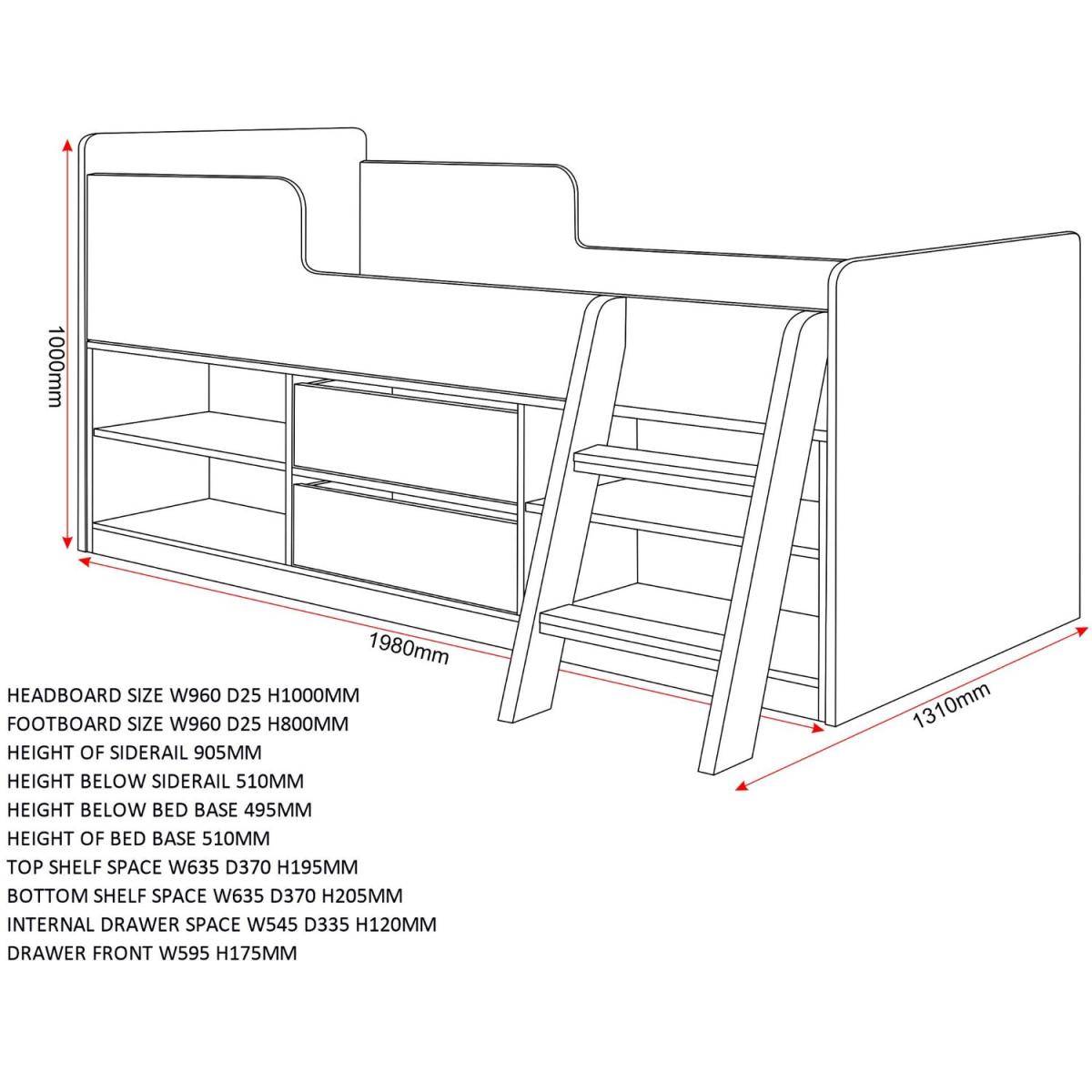 The Felix Low Sleeper is a great solution for any bedroom. Featuring 2 pull-out drawers and useful shelving, suitable to store your kids items, suitable for any bedroom decor. Available in a range of colours,UK Mainland delivery only, between 9am - 9pm (weekdays) the courier will contact you on the day of delivery to offer a time slot. This takes place within 10 working days (Ground floor only). Please also ensure that we have a note of your up-to-date address and contact information, including daytime phone number and email address to be passed to the couriers.