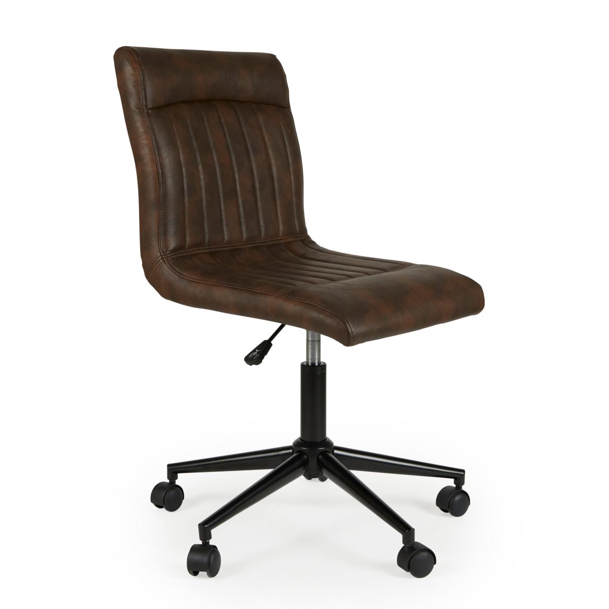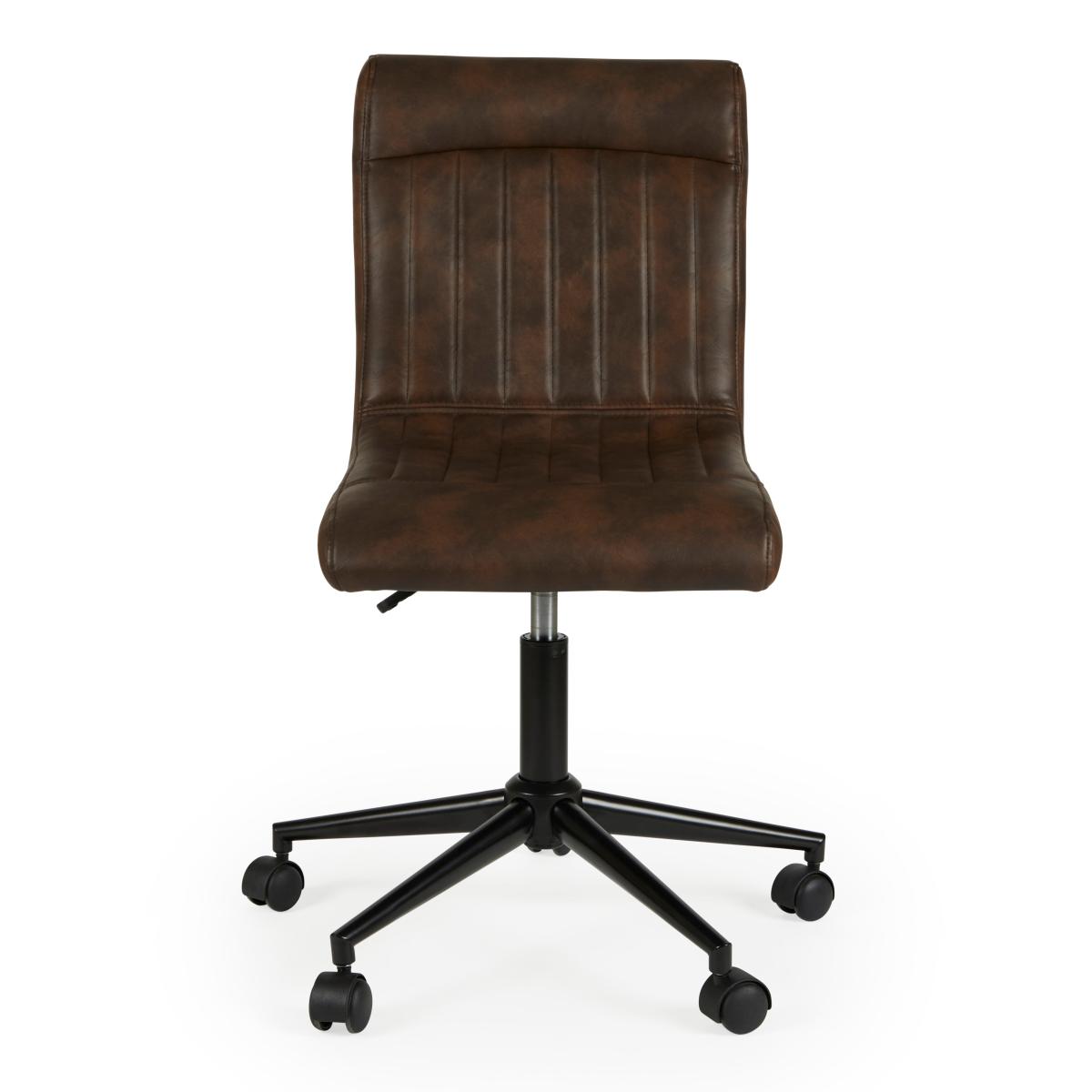 Work from home in style with the Felix Office Chair, the perfect addition to any office. This chair is height adjustable to cater to your needs and features delicate stitch detailing on the trendy faux leather seat on a sturdy, metal swivel base.