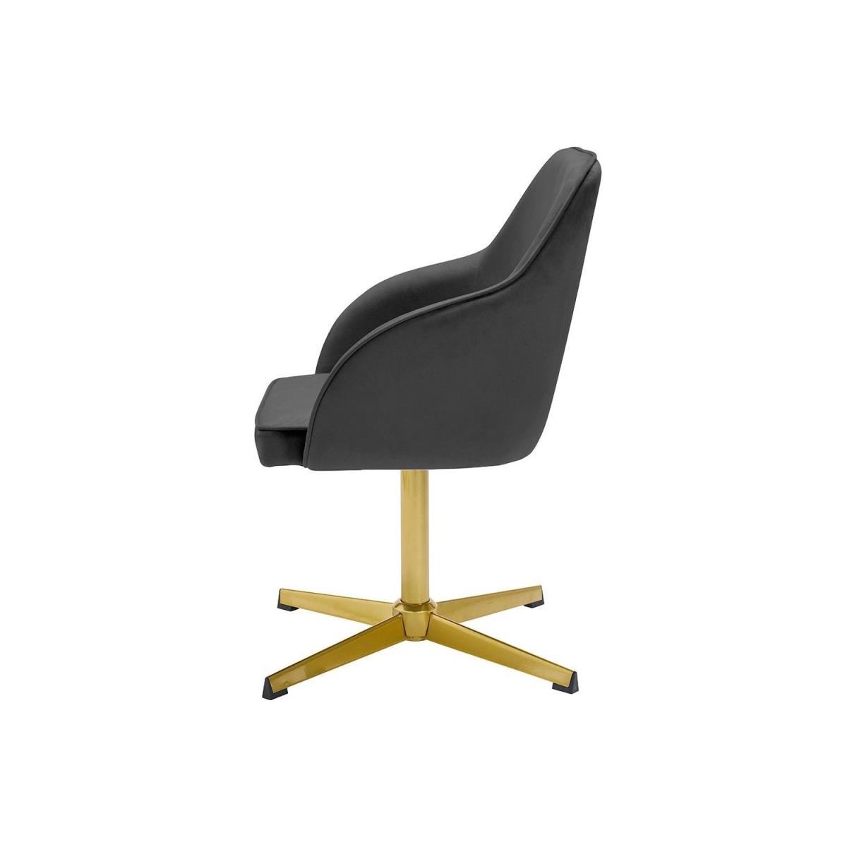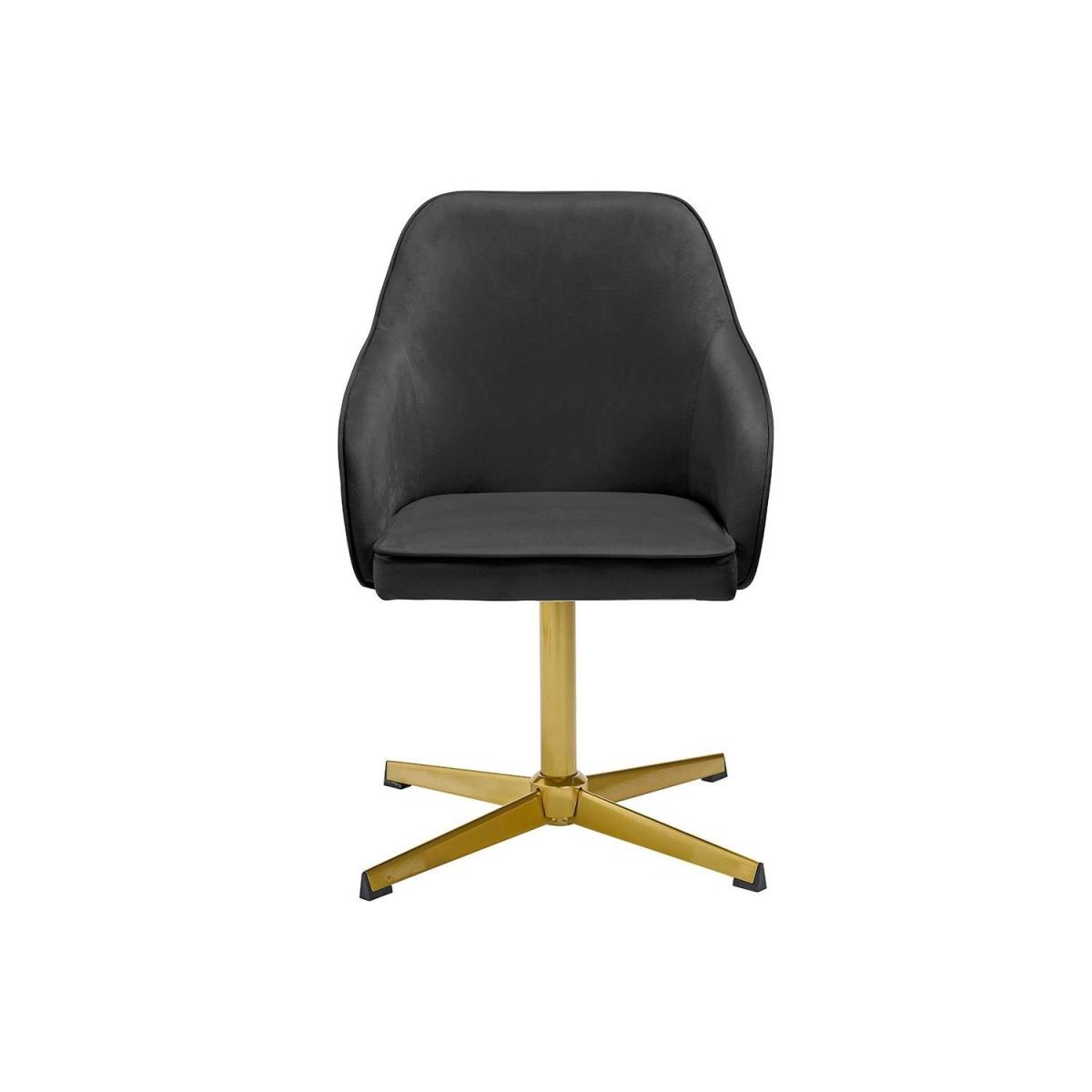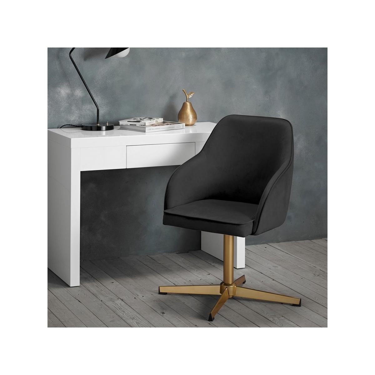 I love this chair for adding a touch of luxe to both home and office settings. The black velvet upholstery offers a sophisticated, cosy vibe that works well in modern, minimal, or even eclectic interiors. It’s versatile enough to pair with both warm wood tones and sleek metals, making it suitable for a variety of colour palettes. Practical styling tips include placing it in a corner as a reading nook or pairing it with a contemporary glass or metal desk for a chic workspace. The gold base adds a luxe finish, so keep accessories like metallic desk accessories or art in similar tones to reinforce its stylish appeal. Overall, it’s a practical yet statement piece that elevates your workspace effortlessly.