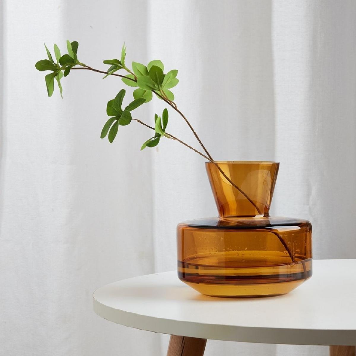 Felix small amber glass vase, featuring a wide cylindrical base and a tapered neck. A stunning blend of mid-century design and warm elegance, this beautiful vase features a rich amber hue that adds warmth and sophistication to any room. Its silhouette showcases a wide cylindrical base that provides stability and a striking presence, while the neck elegantly tapers to hold floral arrangements with grace. The Felix vase’s clean lines and rich color make it a versatile piece, perfect for both contemporary and traditional settings. Whether displayed as a centerpiece or as part of a decorative arrangement, the Felix orange glass vase effortlessly enhances your home decor with its timeless style and understated beauty. Felix small amber glass vase, featuring a wide cylindrical base and a tapered neck. A stunning blend of mid-century design and warm elegance, this beautiful vase features a rich amber hue that adds warmth and sophistication to any room. Its silhouette showcases a wide cylindrical base that provides stability and a striking presence, while the neck elegantly tapers to hold floral arrangements with grace. The Felix vase’s clean lines and rich color make it a versatile piece, perfect for both contemporary and traditional settings. Whether displayed as a centerpiece or as part of a decorative arrangement, the Felix orange glass vase effortlessly enhances your home decor with its timeless style and understated beauty.