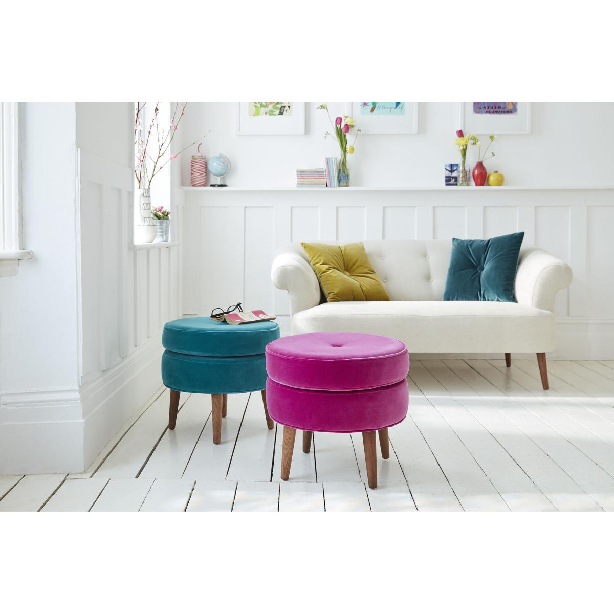 Take the weight off your feet with our little Felix footstool! Its comfy cushion pad is fixed in place and it has four sturdy, tapered legs that give lots of lovely support. Its little button detail harks back to mid-century design so pair it with other retro style furniture to get that throwback feel.
