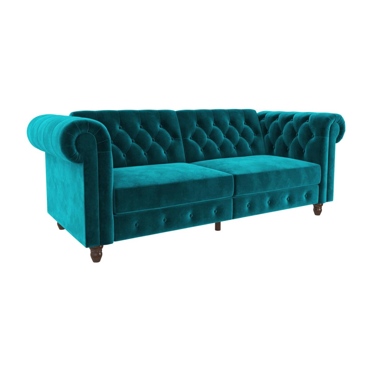 I love this velvet chesterfield sofa bed for its luxurious look and vibrant colour-they really make a statement in both modern and classic interiors. Its rich blue tone pairs well with neutral shades for a sophisticated feel, or it can be a bold accent in more eclectic spaces. To style it effectively, consider adding tactile cushions or throws in complementary textures or colours to soften the look and enhance comfort. It works particularly well in living rooms, guest rooms, or even a cosy office space where you want to bring both style and practicality. Because of its timeless silhouette, it can easily be dressed up with vintage accessories or kept sleek and modern with minimal decor.