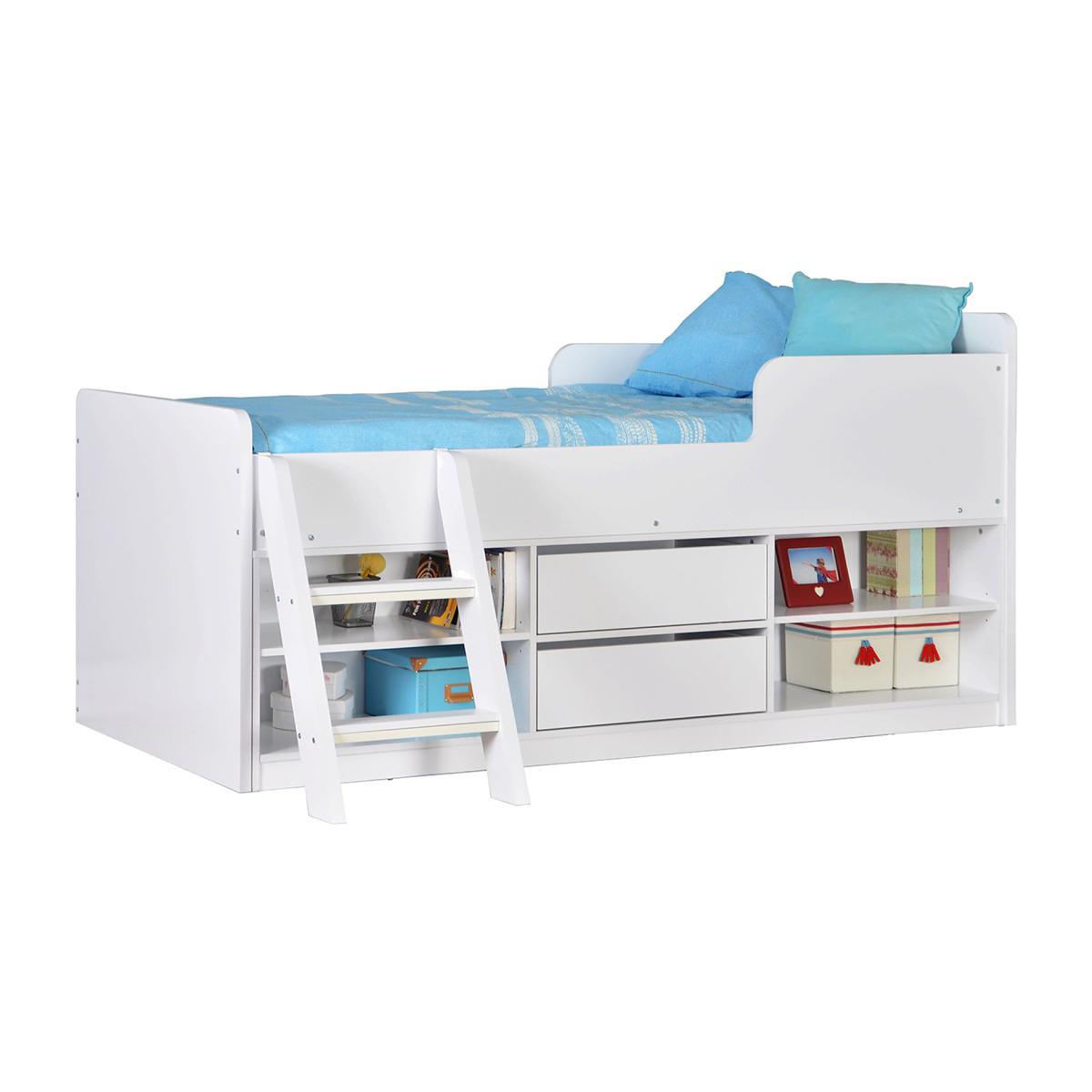A solid and sturdy wooden cabin bed that features a space saving shelving unit with 2 drawers. Accessed via a short ladder, the Felix Low Sleeper Bed is a beautifully designed and practical bed frame ideal for any child's bedroom. Please note, unfortunately we cannot deliver this item to the Channel Islands.