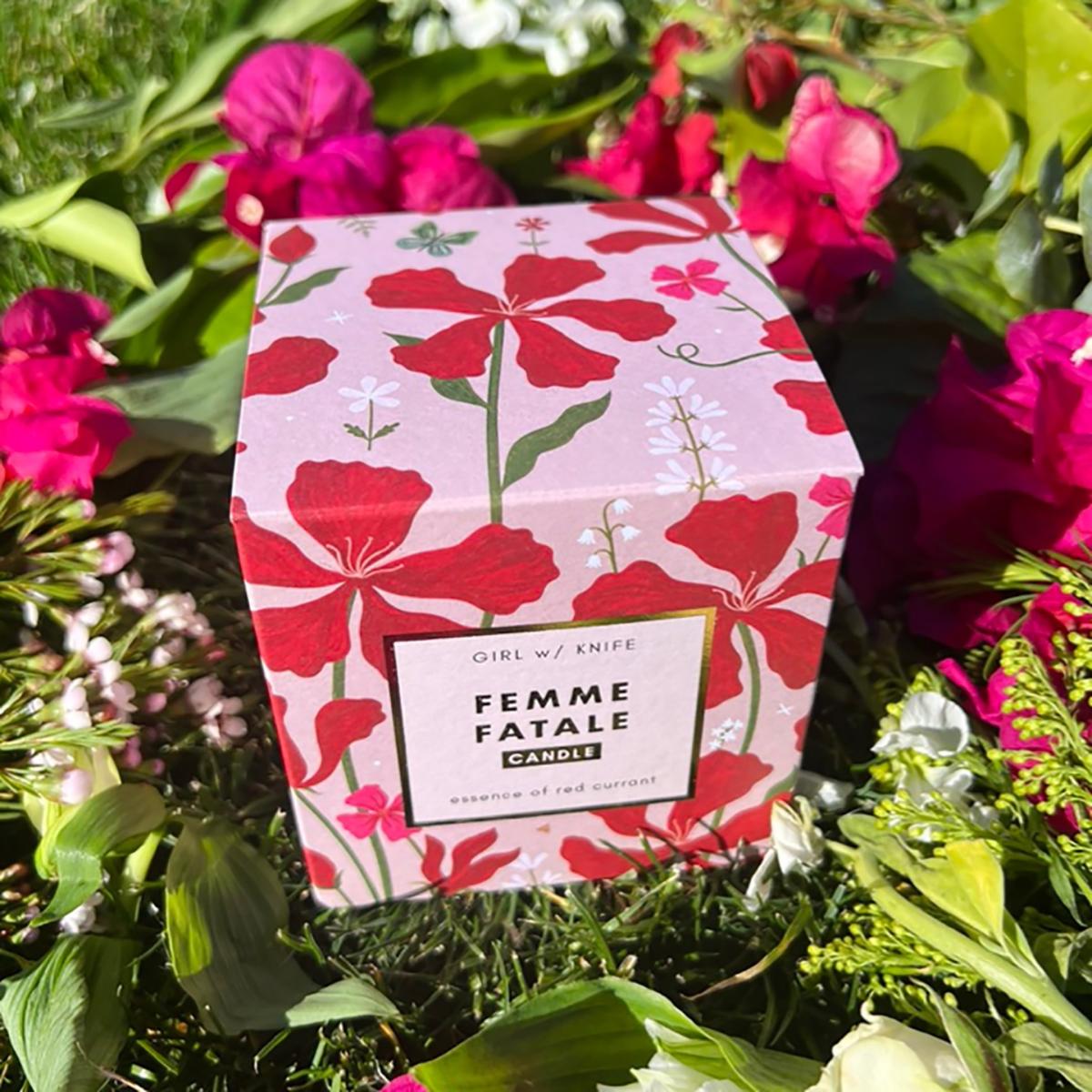 Femme Fatale Candle. Essence of red currant. Inspired by the fierce unpredictability of Mother Nature. Our red currant, the perfect juxtaposition of sweet and don't underestimate me... *wink*