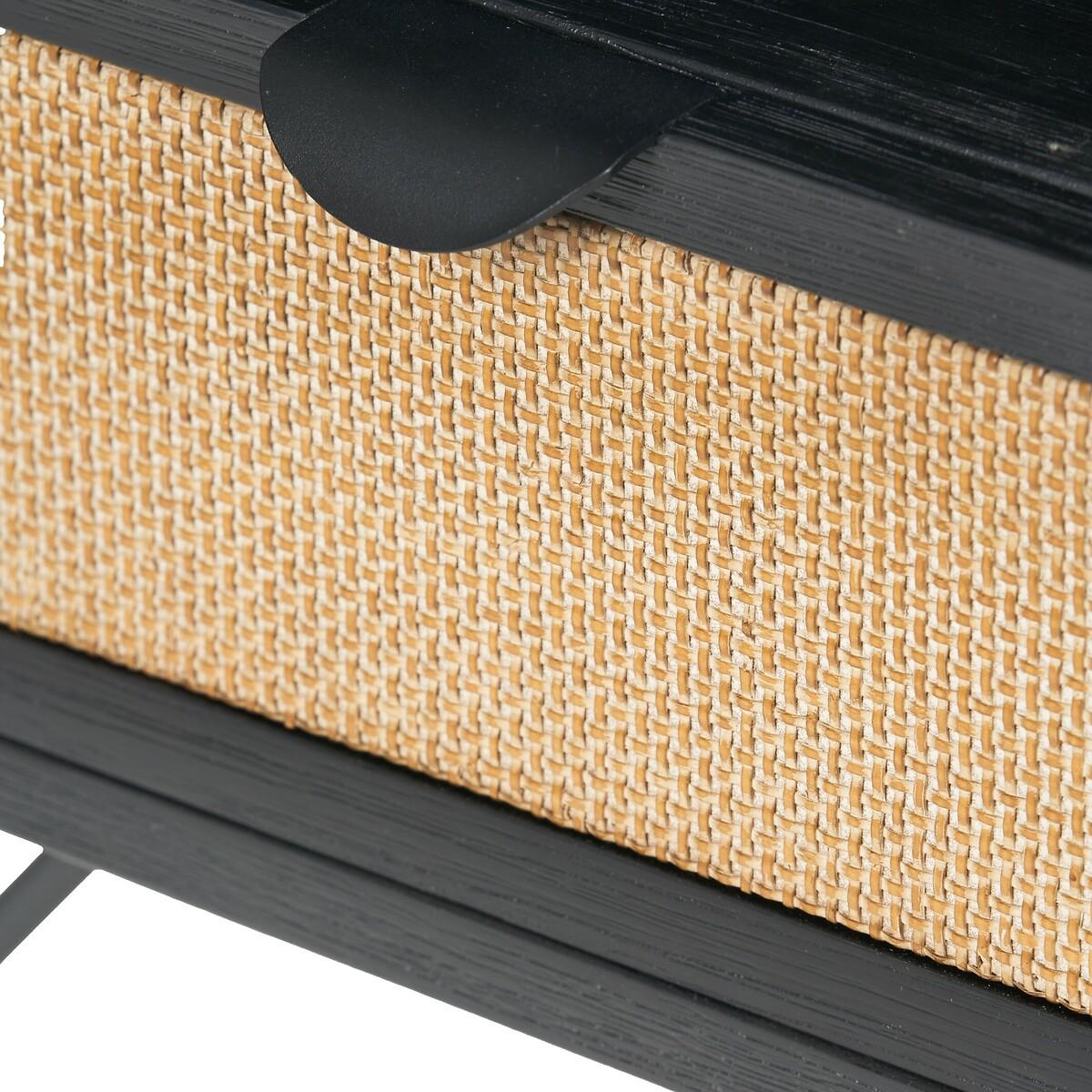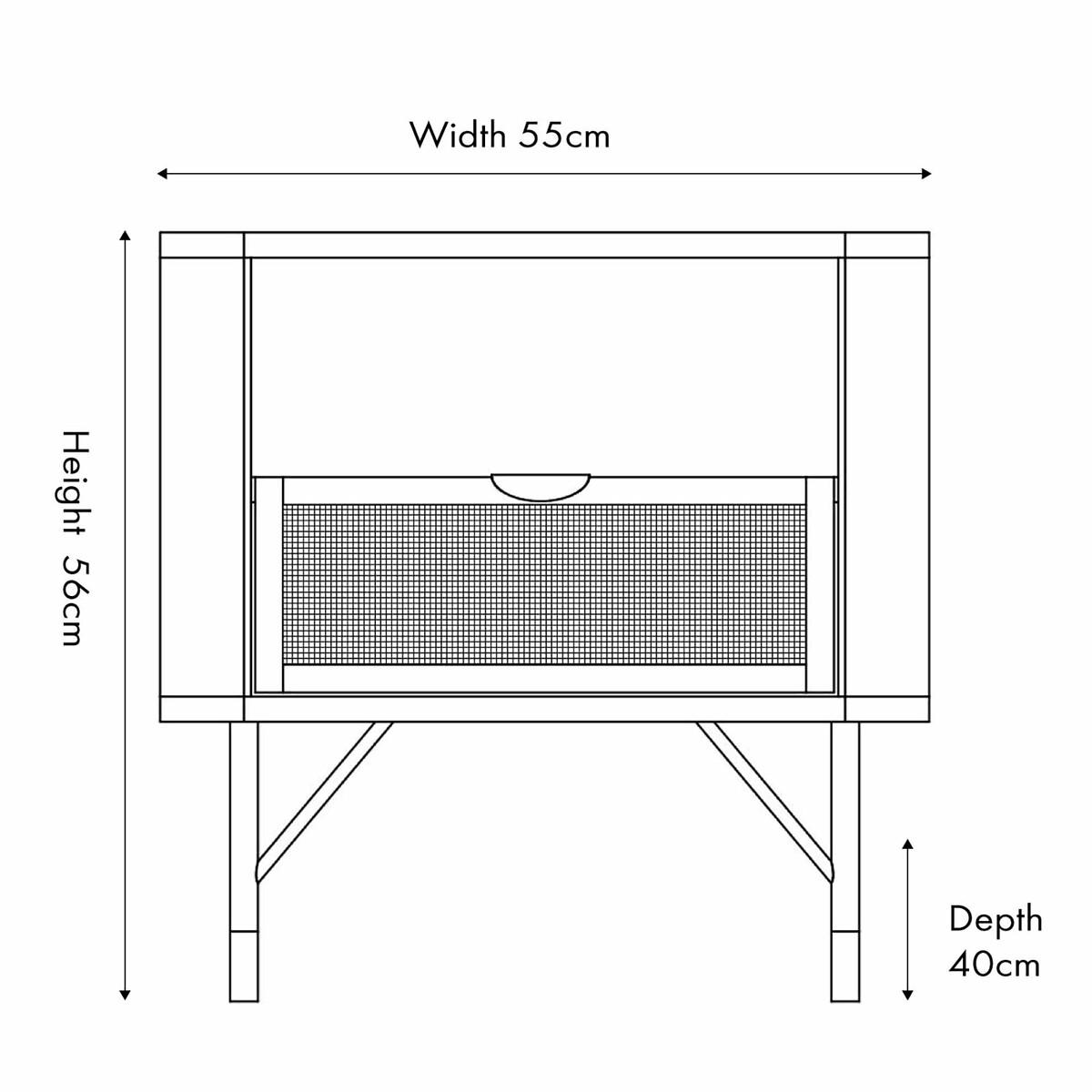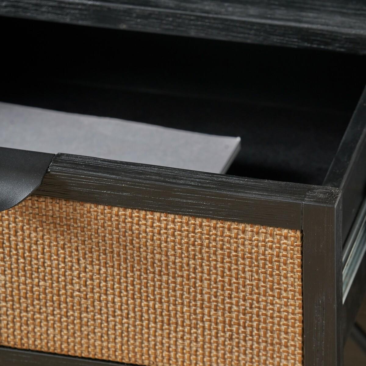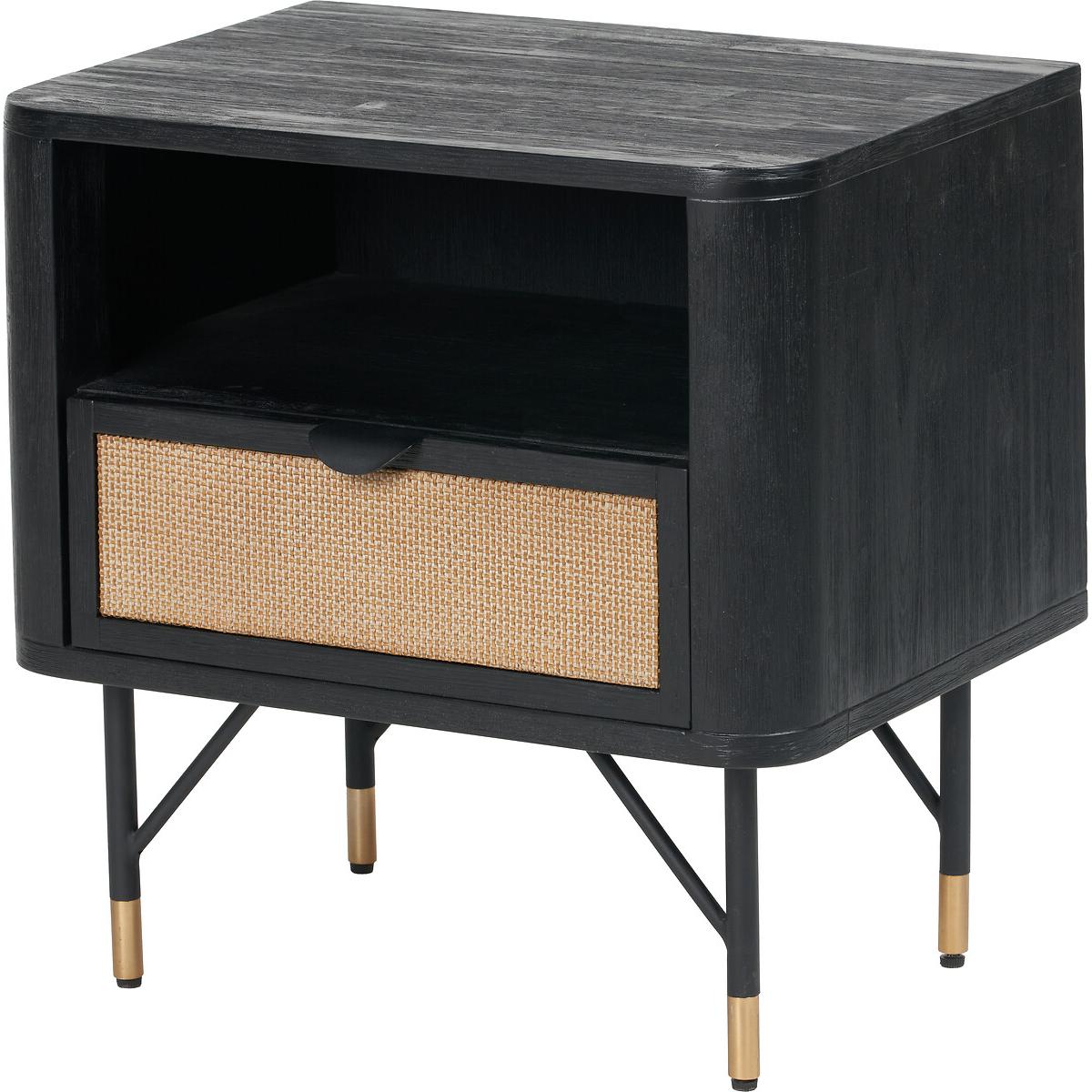 The Fenix Bedside Table blends contemporary style with organic texture, making it a standout addition to any bedroom. Handcrafted in Vietnam, it showcases a striking contrast of black-finished acacia wood and a woven natural rattan drawer front, all perched atop of matte black metal legs tipped with gold to add a touch of luxury. Subtle matte black handles complete the look. With its woven rattan detailing and wood grain finish, this bedside unit is the perfect nod to the neutral trend. Product Details• Single drawer• Contrasting rattan and wood finish• Woven rattan detail• Sleek matte black metal legs tipped with gold • Subtle matte black handles• Interior shelf• Partial assembly required (legs/feet only)• Wall fixings included• 1 year manufacturers warranty. Product Composition - Acacia wood 90%, Rattan 7.5%, Iron 2.5%Product Dimensions - 55 cm x40 cm x56 cm , Weight - 14 KG• Shelf size: 51 x 37 x 16 cm Package Dimensions - 62 cm x 62 cm x 48 cm, Weight 19 kg. This product will be dispatched by one of our trusted suppliers. You’ll be contacted by their selected courier about your delivery.