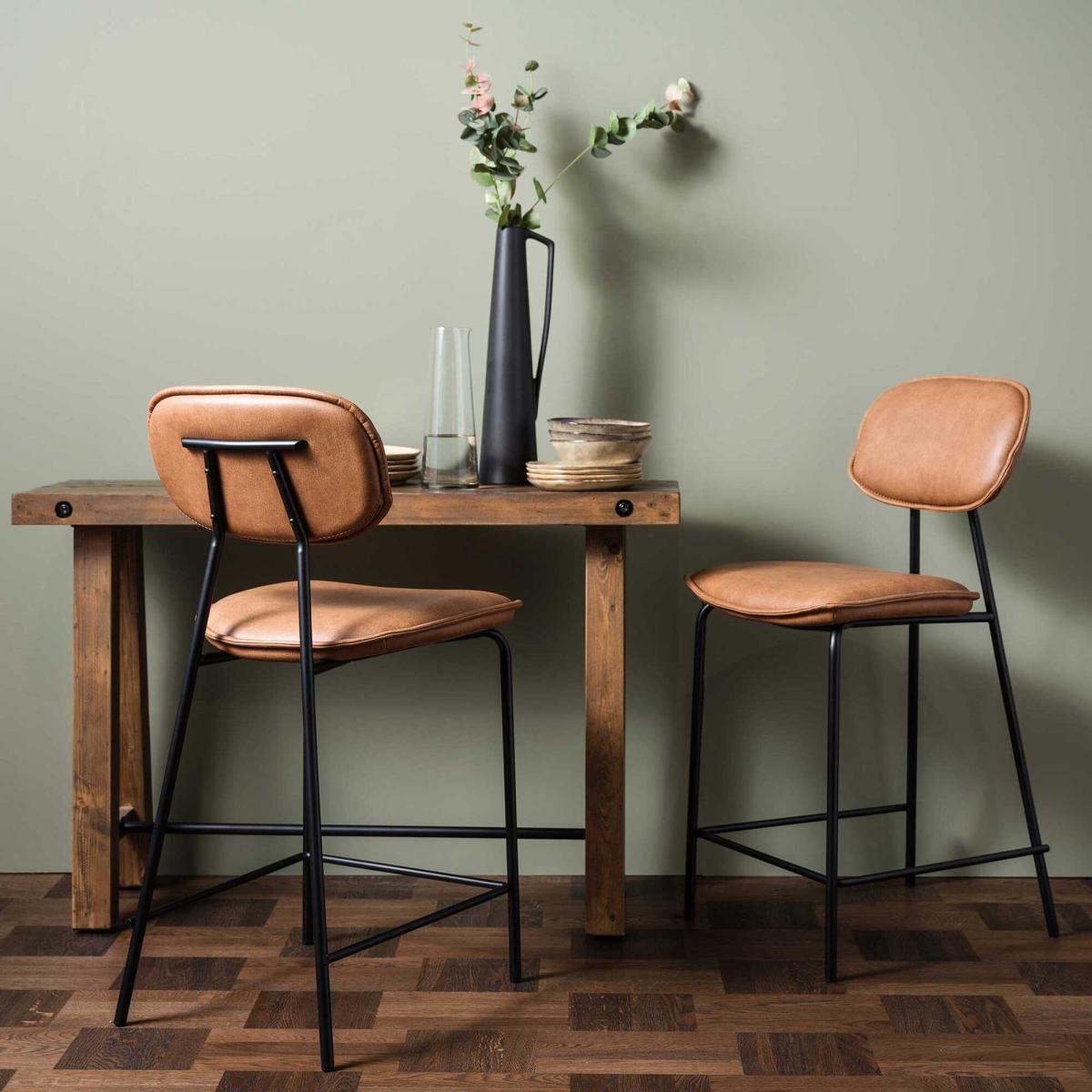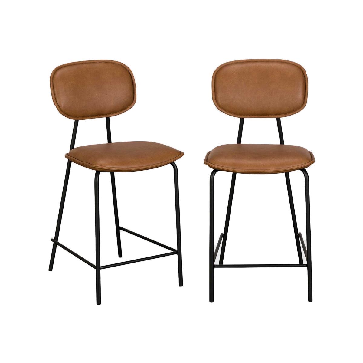 Improve your dining experience with our Brown Faux Leather Pair of Bar Stools with a perfect blend of style and functionality. Crafted for superior comfort, the seat contours to your body, ensuring optimal support. The sleek design is complemented by a robust matt black metal frame, providing stability and durability. Whether you are enjoying a meal or working at the counter, this stool delivers ergonomic excellence. Embrace modern sophistication in your dining room or office with this versatile bar stool, designed to enhance both your space and comfort