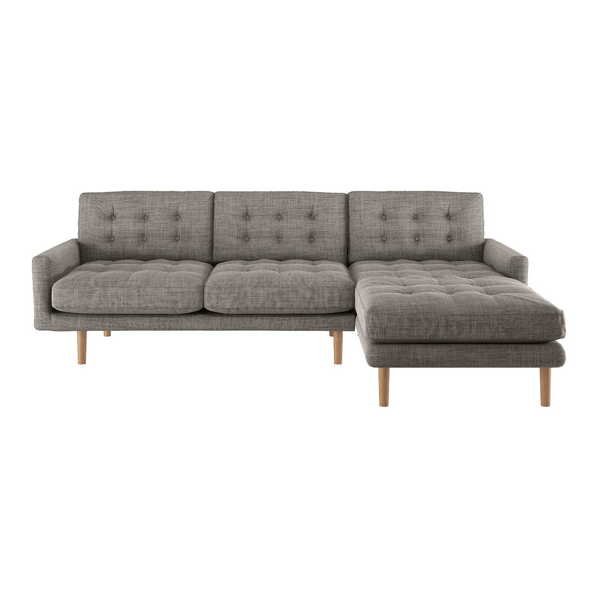 Made in Italy, the Fenner black and white Italian woven fabric right-hand 4 seater chaise sofa has slender cushioned arms and soft, feather-wrapped fibre seat and back cushions. The sumptuous sofa combines a classic box frame with loose covers for a softer look and has button detailing on its cushions, which acquire a relaxed, comfortably lived-in look over time. Exclusive to Habitat, the sofa's deep seat and thin frame create a large seating area;available in a choice of fabrics, colours, sizes and configurations, the design offers luxe for less.