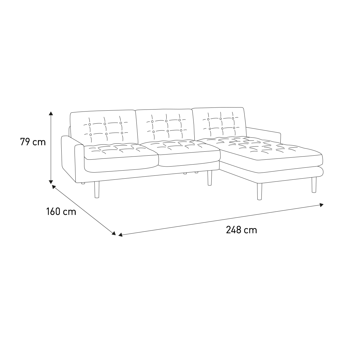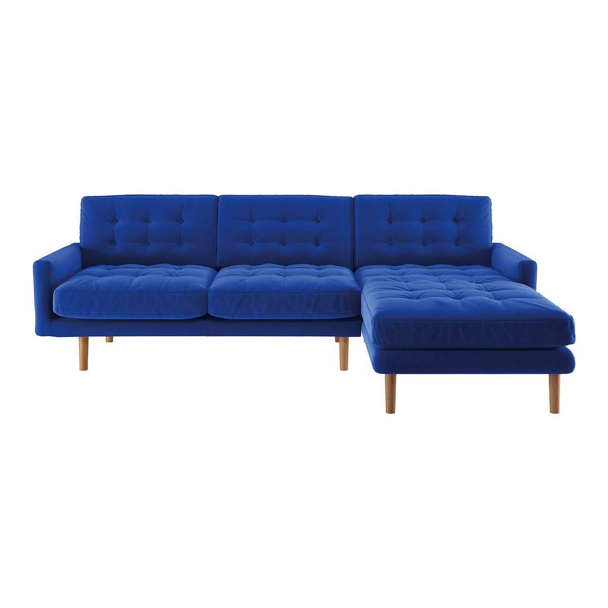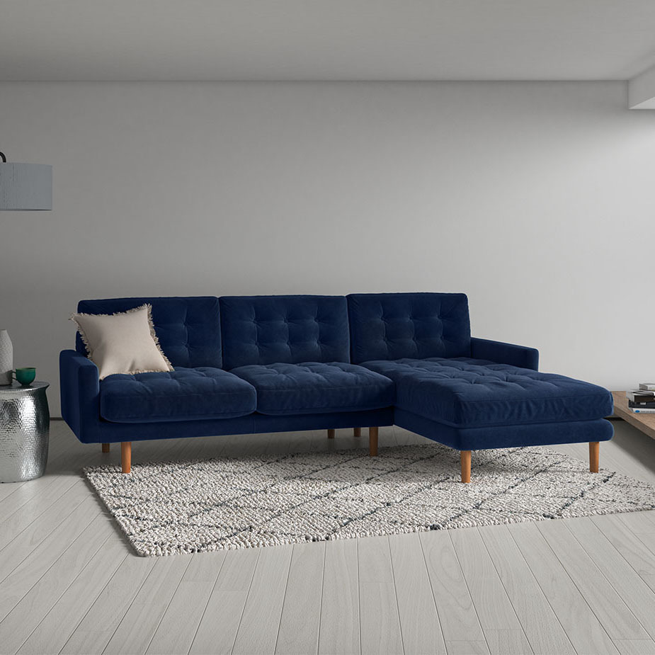 Made in Italy, the Fenner velvet dark grey right-hand 4 seater chaise sofa has slender cushioned arms and soft, feather-wrapped fibre seat and back cushions. The sumptuous sofa combines a classic box frame with loose covers for a softer look and has button detailing on its cushions, which acquire a relaxed, comfortably lived-in look over time. Exclusive to Habitat, the sofa's deep seat and thin frame create a large seating area;available in a choice of fabrics, colours, sizes and configurations, the design offers luxe for less.