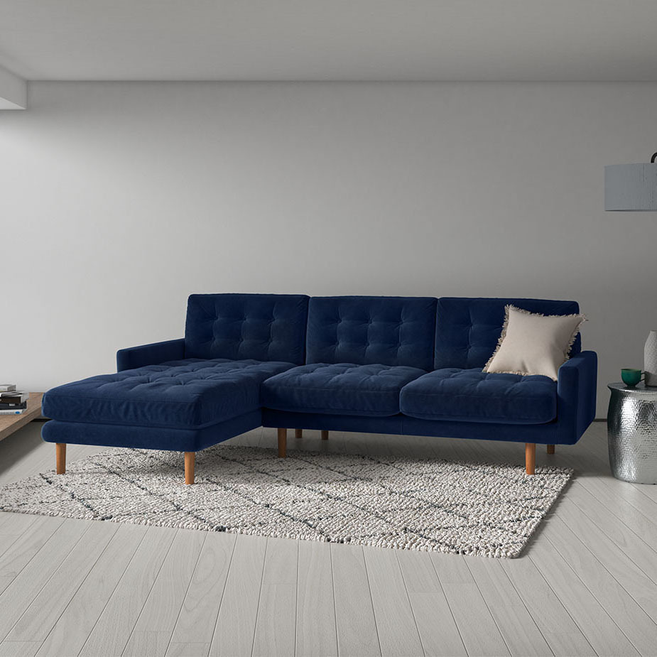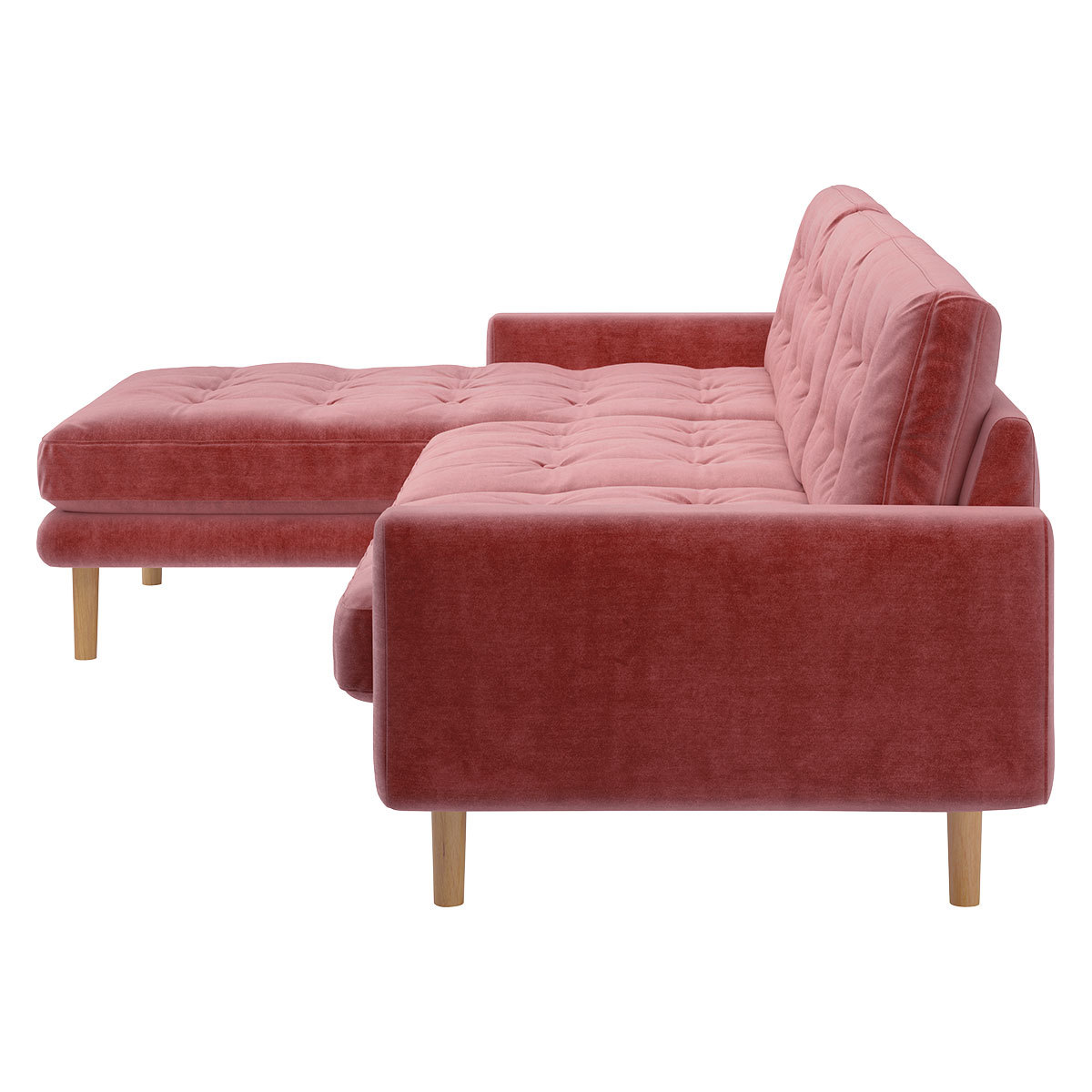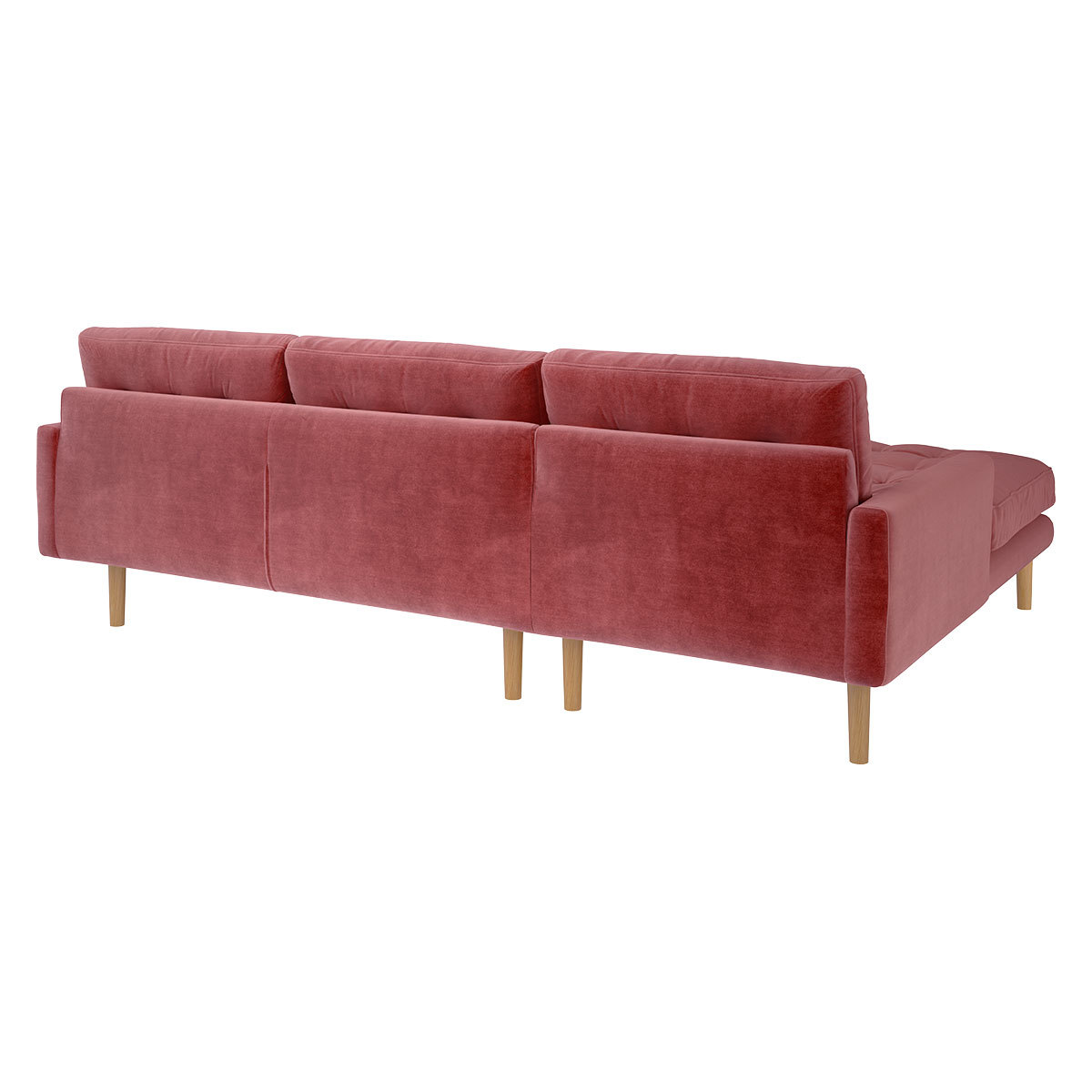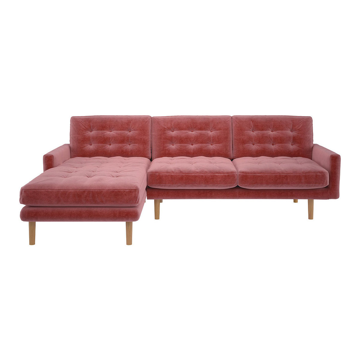 Made in Italy, the Fenner velvet dusty rose left-hand 4 seater chaise sofa has slender cushioned arms and soft, feather-wrapped fibre seat and back cushions. The sumptuous sofa combines a classic box frame with loose covers for a softer look and has button detailing on its cushions, which acquire a relaxed, comfortably lived-in look over time. Exclusive to Habitat, the sofa's deep seat and thin frame create a large seating area;available in a choice of fabrics, colours, sizes and configurations, the design offers luxe for less.