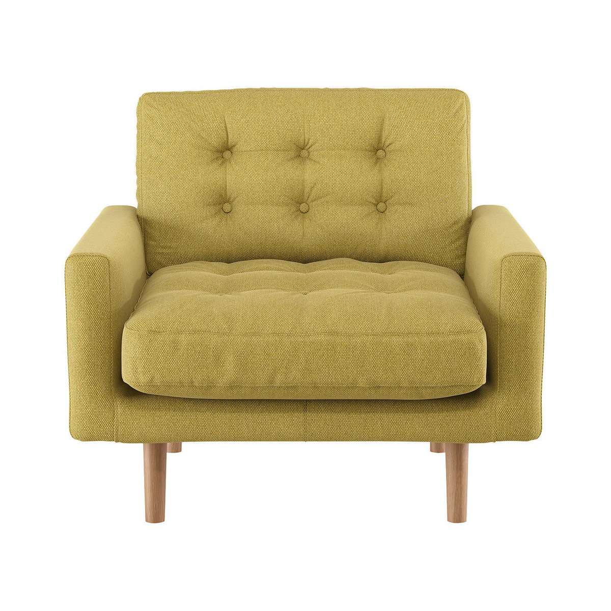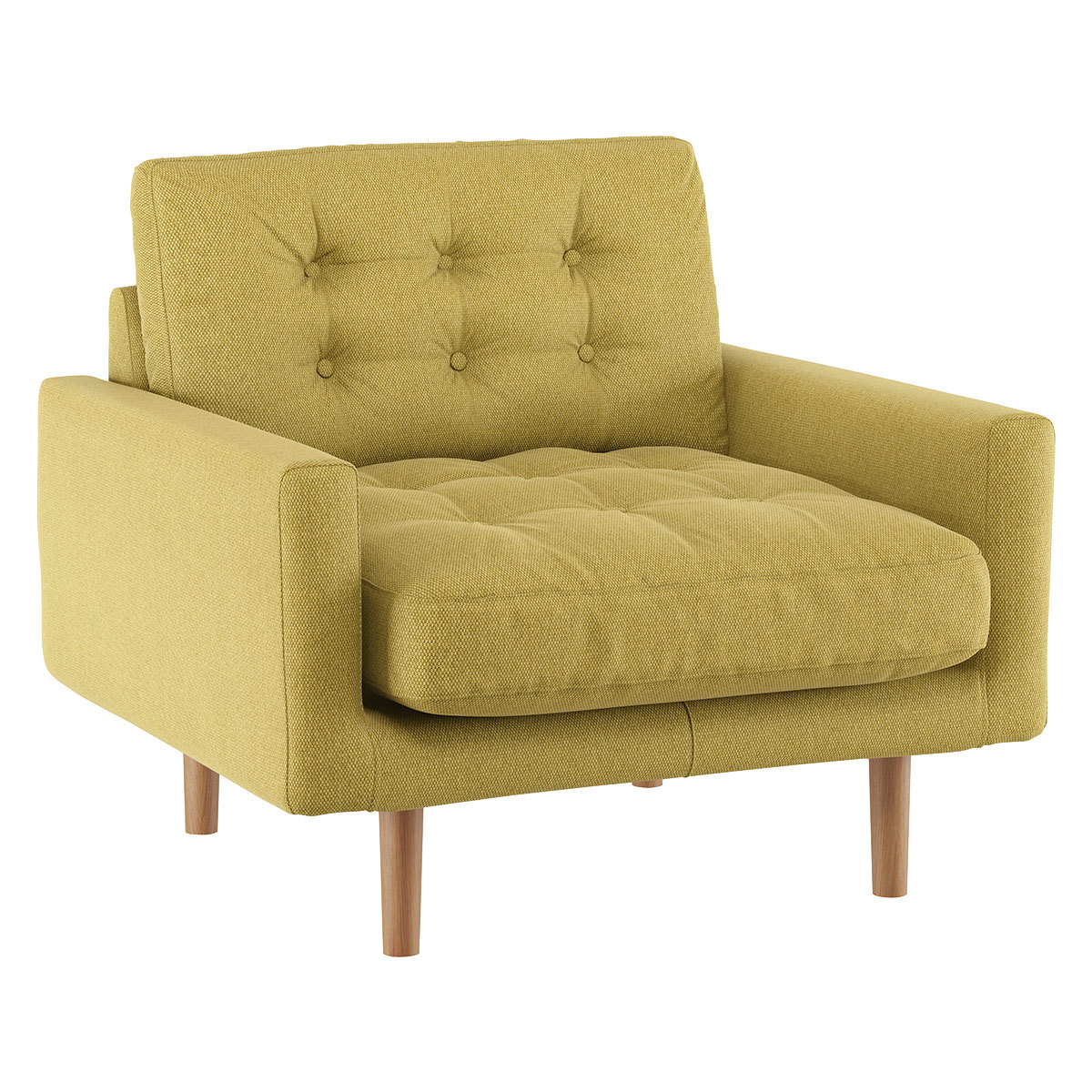 Made in Italy, the Fenner saffron fabric armchair has slender cushioned arms and soft, feather-wrapped fibre seat and back cushions. The sumptuous armchair combines a classic box frame with loose covers for a softer look and has button detailing on its cushions, which acquire a relaxed, comfortably lived-in look over time. Exclusive to Habitat, the armchair's deep seat and thin frame create a large seating area;available in a choice of fabrics, colours, sizes and configurations, the design offers luxe for less.