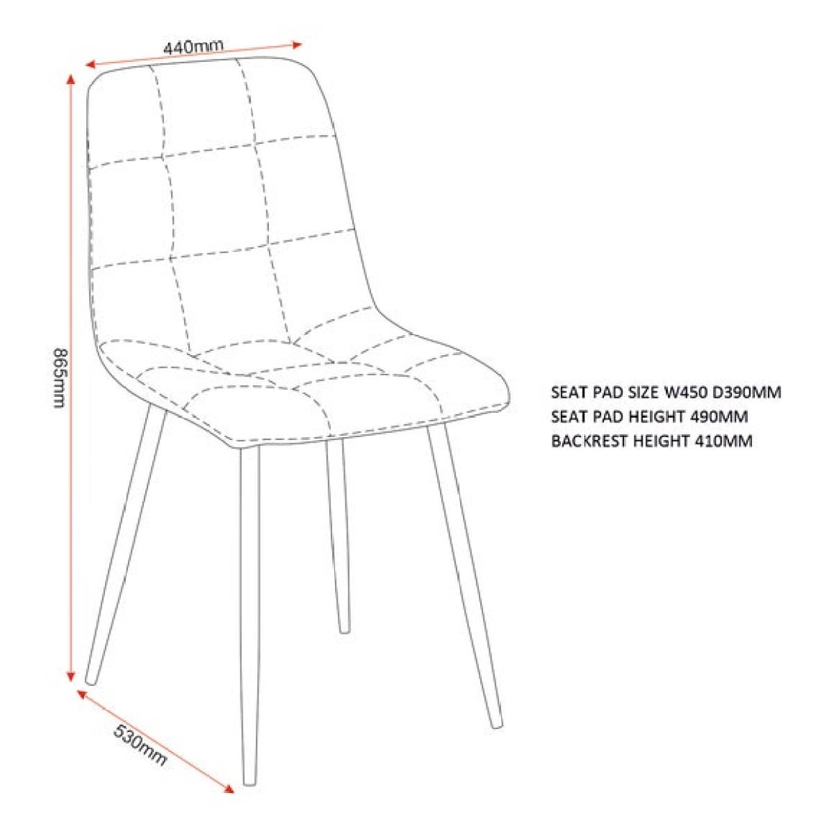 * Set of modern dining chairs * Soft, cushioned seating * Metal legs The Fenton dining chairs are a perfect blend of comfort and contemporary style. Featuring a sleek silhouette, cushioned seat and supportive backrest, it offers a comfortable dining experience for everyday use. Crafted with durable materials and finished with a modern touch, these chairs suit a wide range of décor styles.