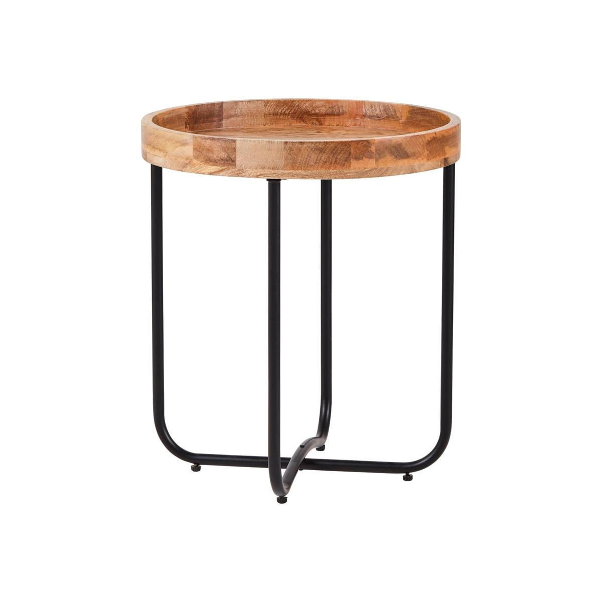 This Side table with the combination of a natural wood top and a black metal frame provides an industrial chic look that would sit well in any living space.