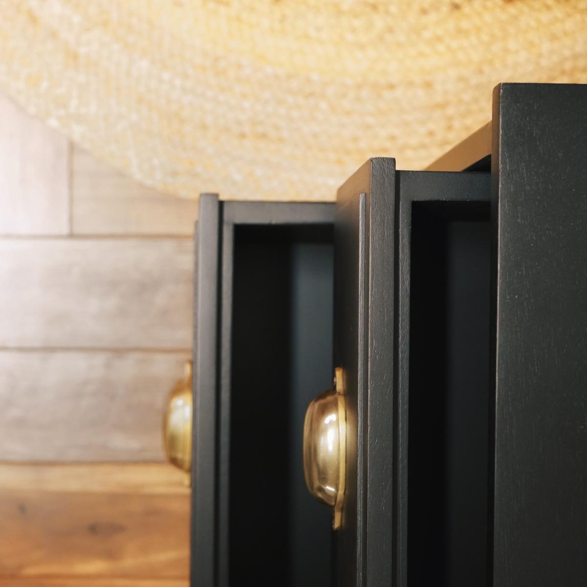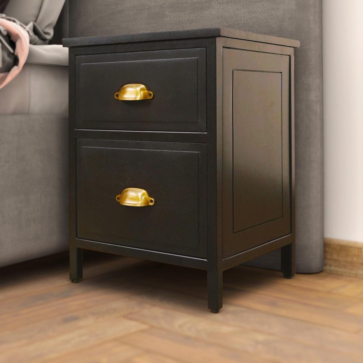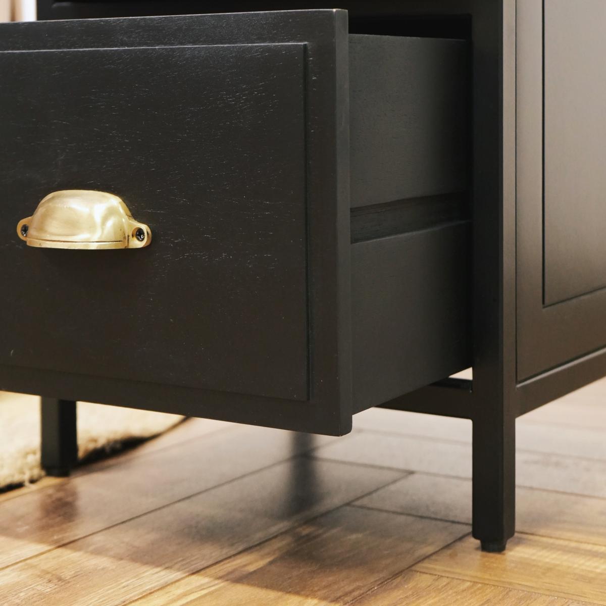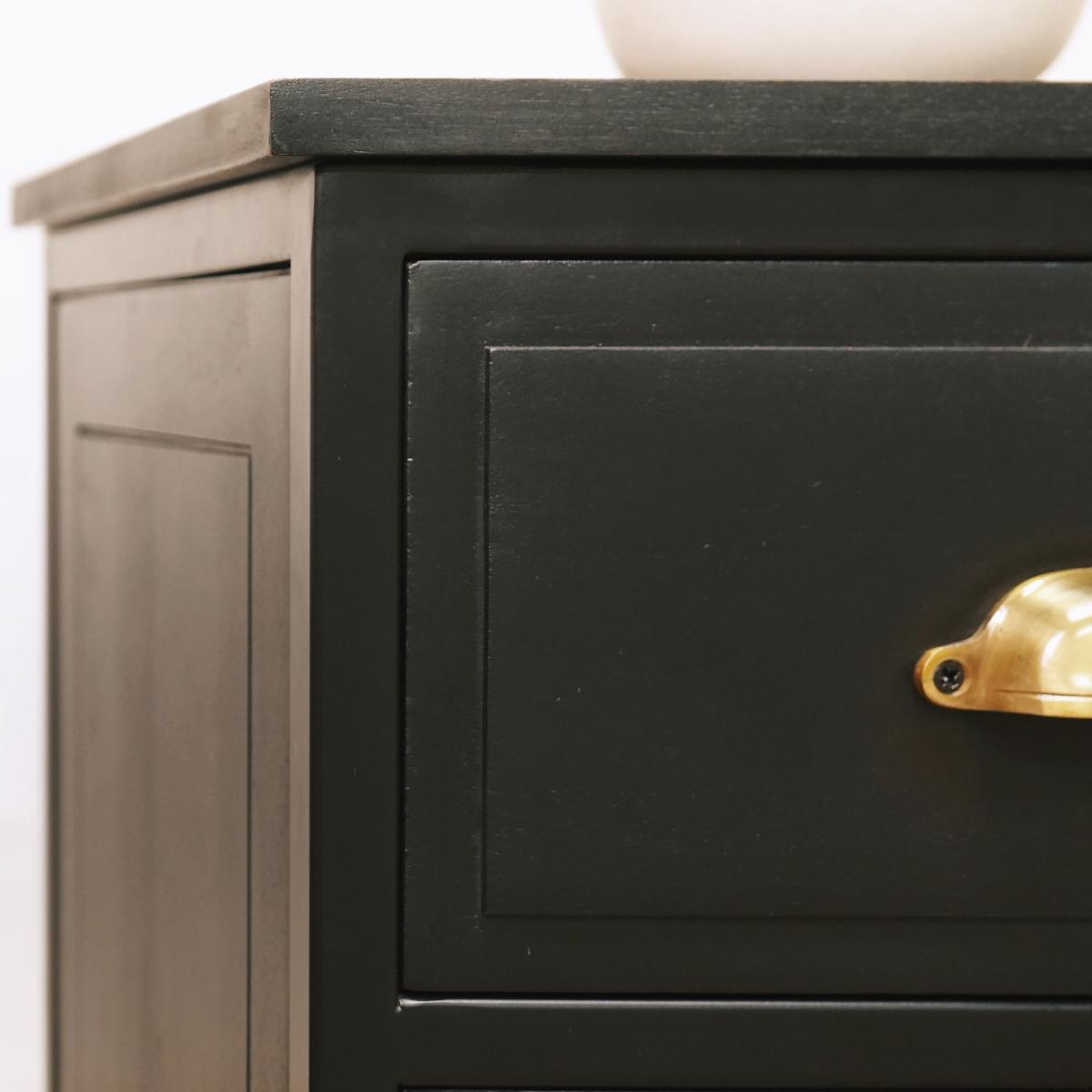The Fenway bedside table is a great choice for adding a sophisticated yet functional touch to a variety of interiors, from modern minimalism to edgy industrial spaces. I love its sleek black finish paired with gold handles, which creates a chic contrast that works well in both contemporary and vintage-inspired bedrooms. Practical styling tips include layering with a statement lamp, a small plant, or a favourite book on top, while keeping the drawers clutter-free for a clean look. Its versatile design means it can be mixed with lighter woods or metals for a more eclectic feel, or complemented with existing dark finishes for a cohesive scheme. Overall, it's a stylish yet practical piece that can enhance the look and organisation of any bedside area.