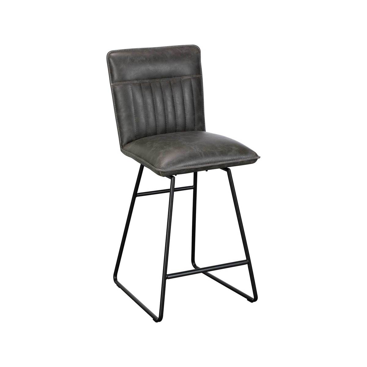 Contemporary and incredibly comfortable, the Ferens bar stool in Grey features a plump seat upholstered in realistic faux leather, complete with exposed stitch detailing. Working well with industrial décor, reclaimed woods and rich colour palettes, the stool sits upon a black metal base that is both sleek and stable. Not just for perching.