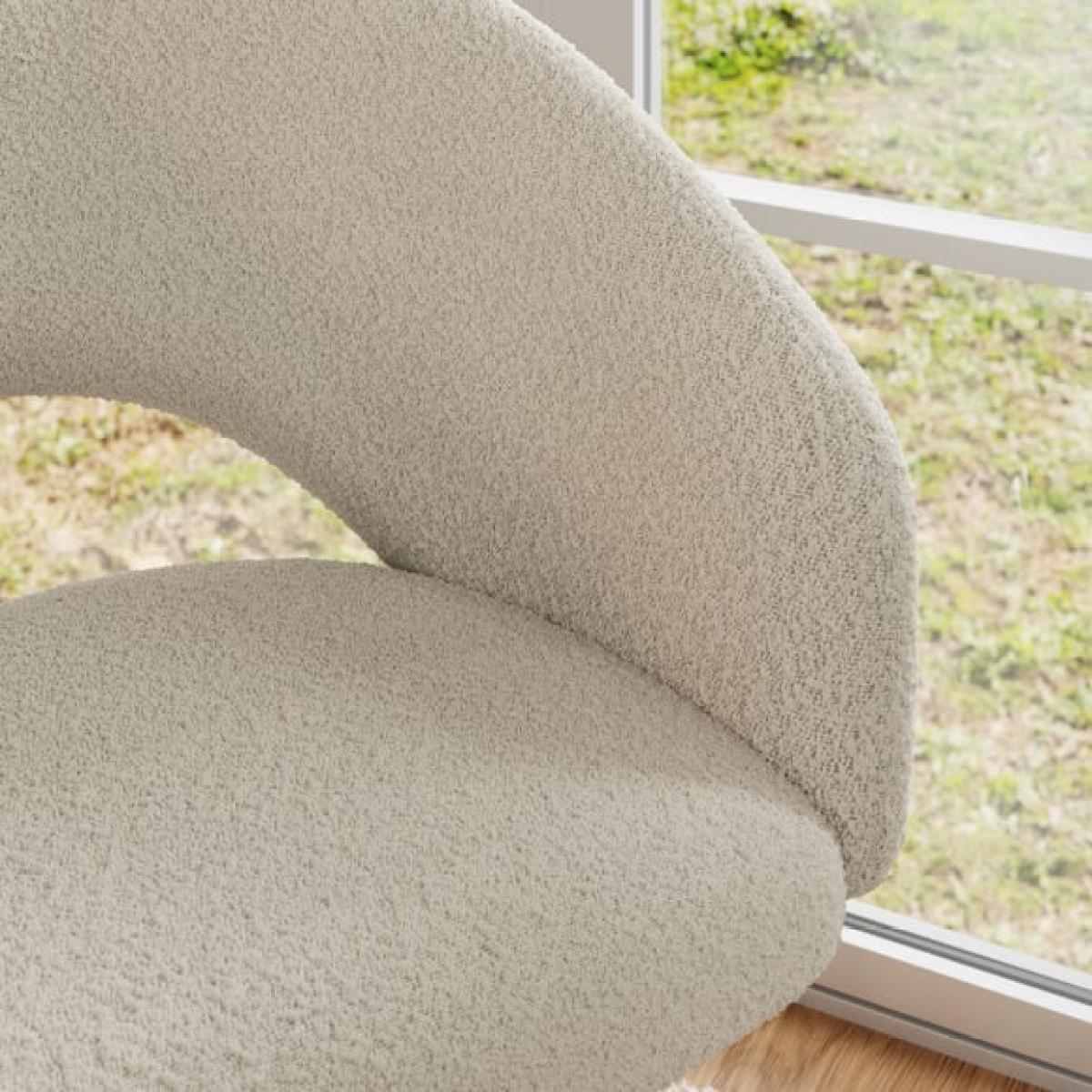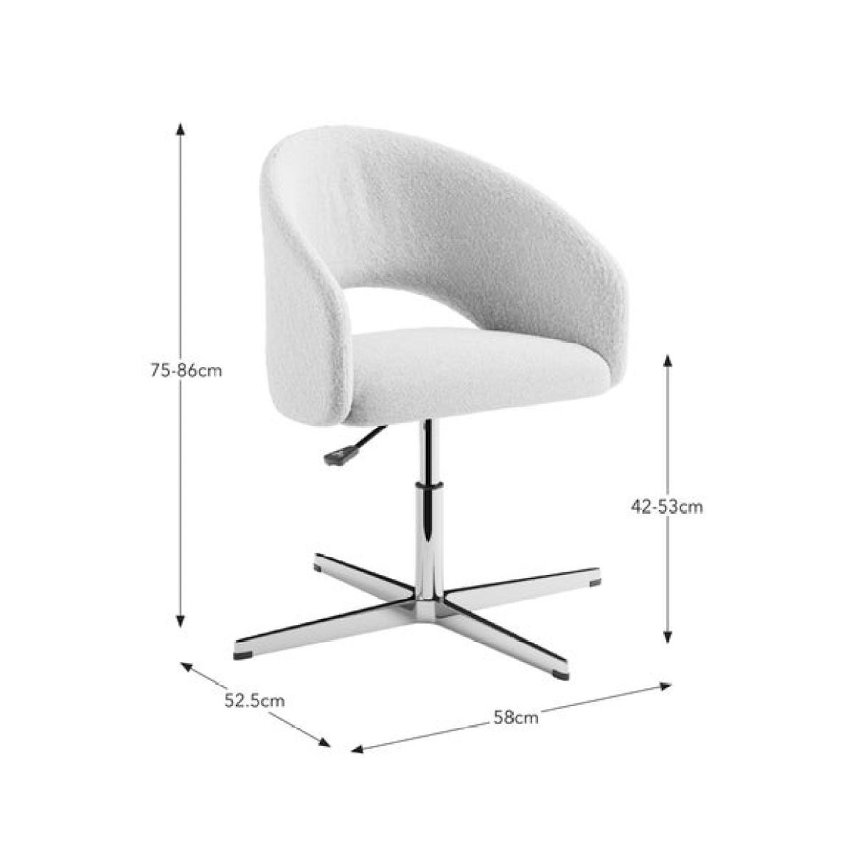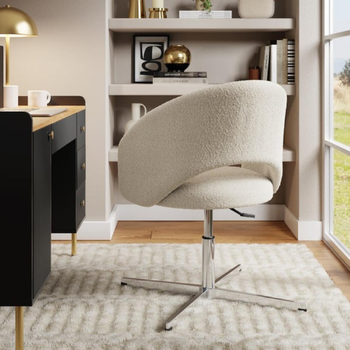 * Modern office chair * Swivel base * Adjustable height * Soft Boucle upholstery A stylish and comfortable choice for your workspace, this office chair is upholstered in soft bouclé fabric that adds a touch of texture and warmth. The supportive seat and sleek silhouette make it a perfect blend of form and function, ideal for both home and office settings.