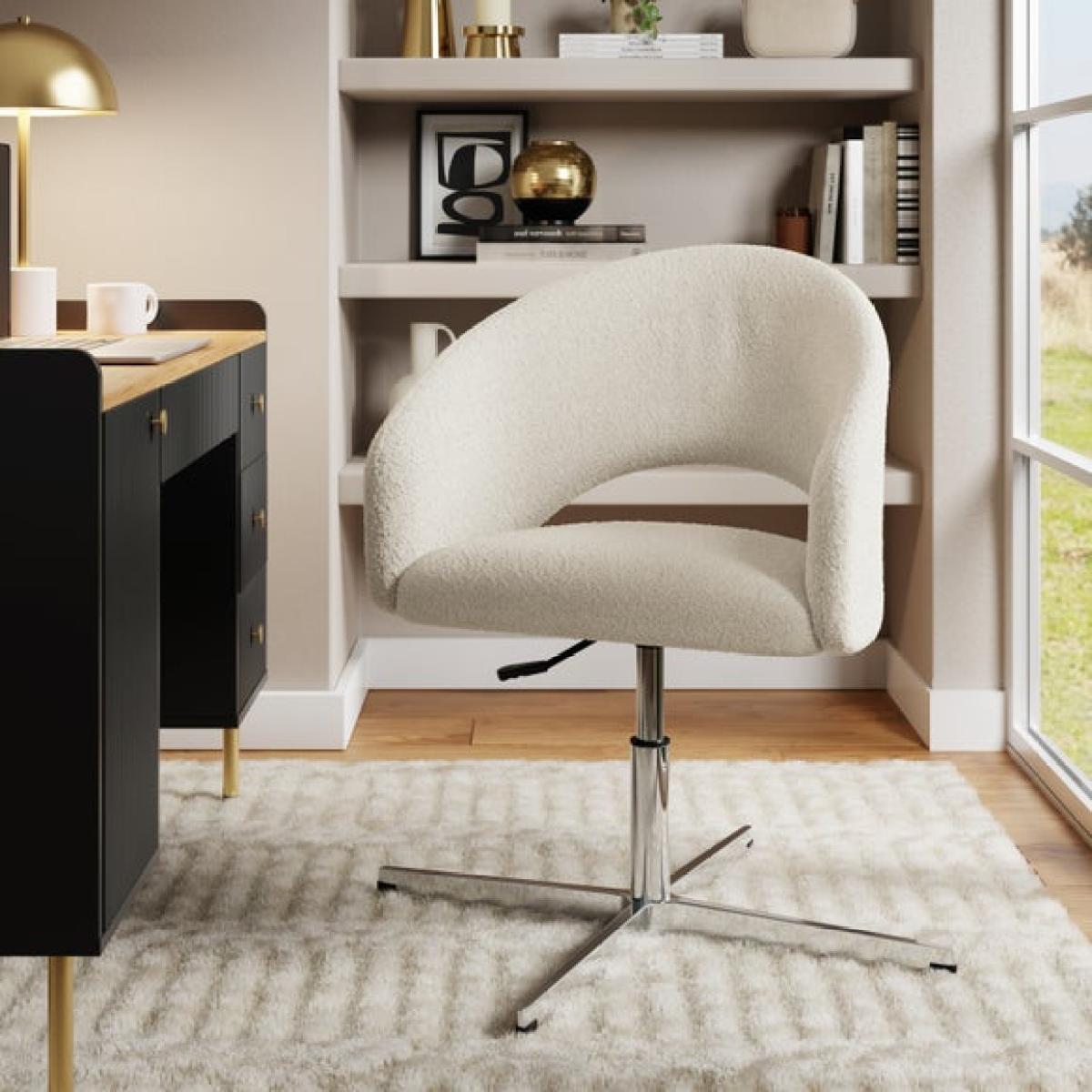 I love the Fergie boucle office chair for its blend of comfort and style-its soft boucle fabric adds texture and a cosy feel, making it a great choice for a home office. It works particularly well in contemporary or Scandinavian-inspired interiors, where neutral tones and natural materials are key. Practical styling tips include pairing it with a sleek desk and minimal accessories to highlight its elegant shape, or placing it in a reading nook for a relaxed yet polished look. The chair’s understated design makes it versatile enough to complement both modern and more eclectic interiors.