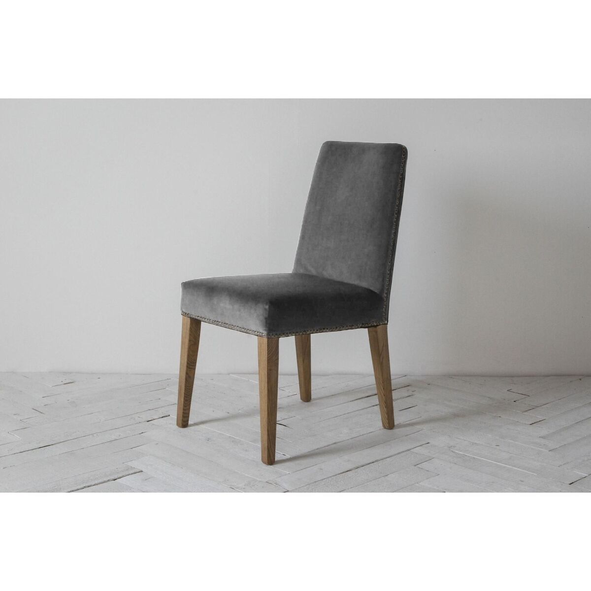 The humble dining chair is reinvented with the fabulous Fergus to take a starring role at the dining scene. Our Fergus combines the best of fabric, wood and metals for a fabulous look, from tip to toe; starting from its solid ash legs, to go on to its fabulous seat, upholstered in Clay velvet and finished off with brass studs throughout the edge. Fit for a king, the Fergus will transform your everyday dining into a banquet packed with poise and character. The Fergus is part of a range and is also available in Marine velvet and Natural Linen.