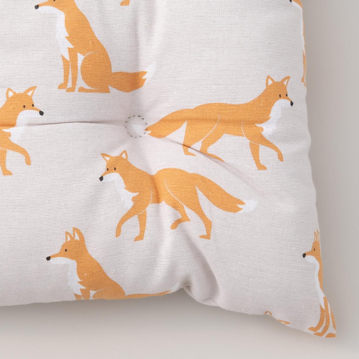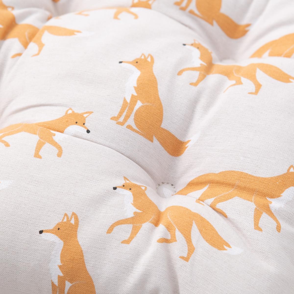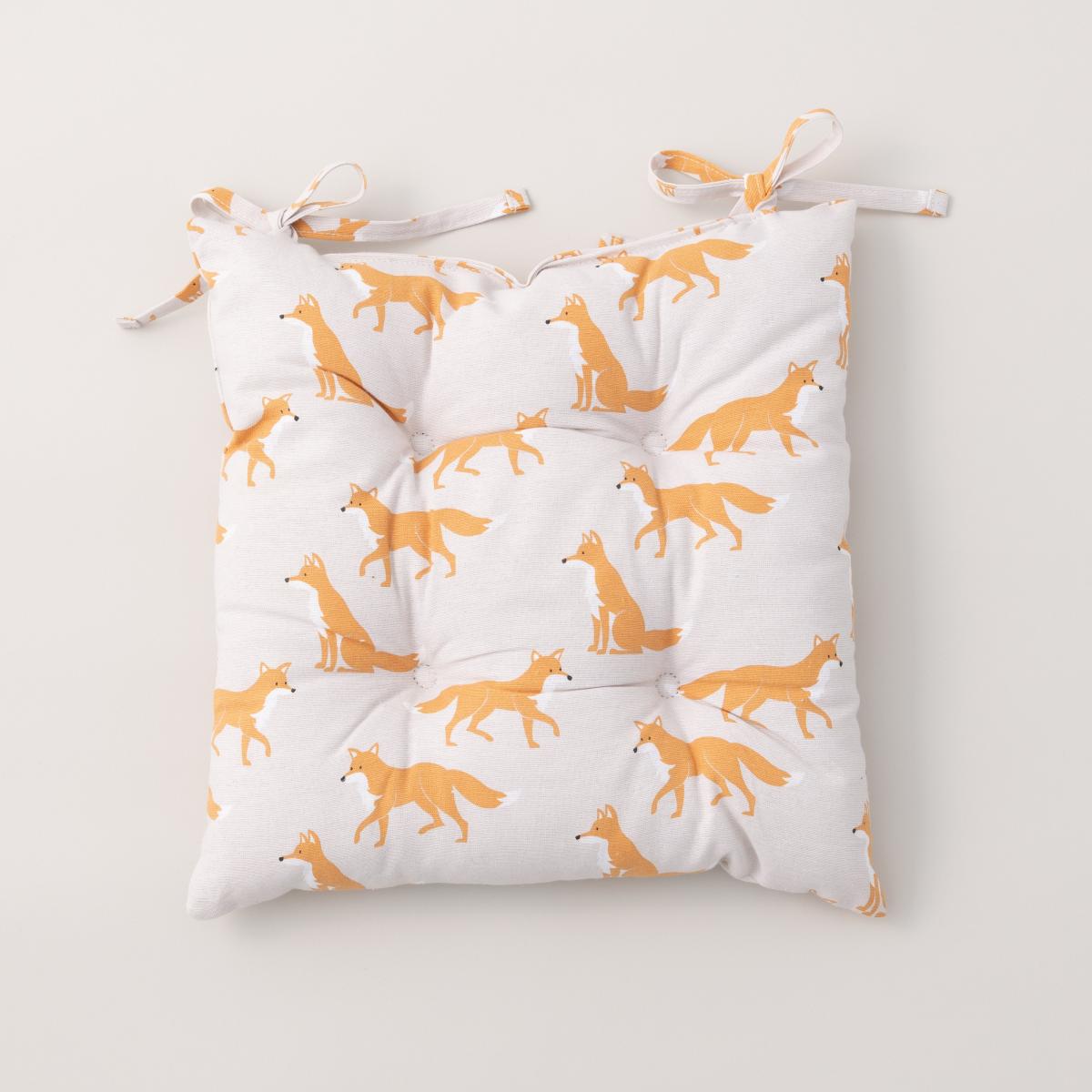 Our Fergus Fox comfy seat pad with its charming print is perfect for animal lovers. Made from Cotton and plumply filled with recycled polyester fibres the, seat pad has two practical ties to fasten to your chair.