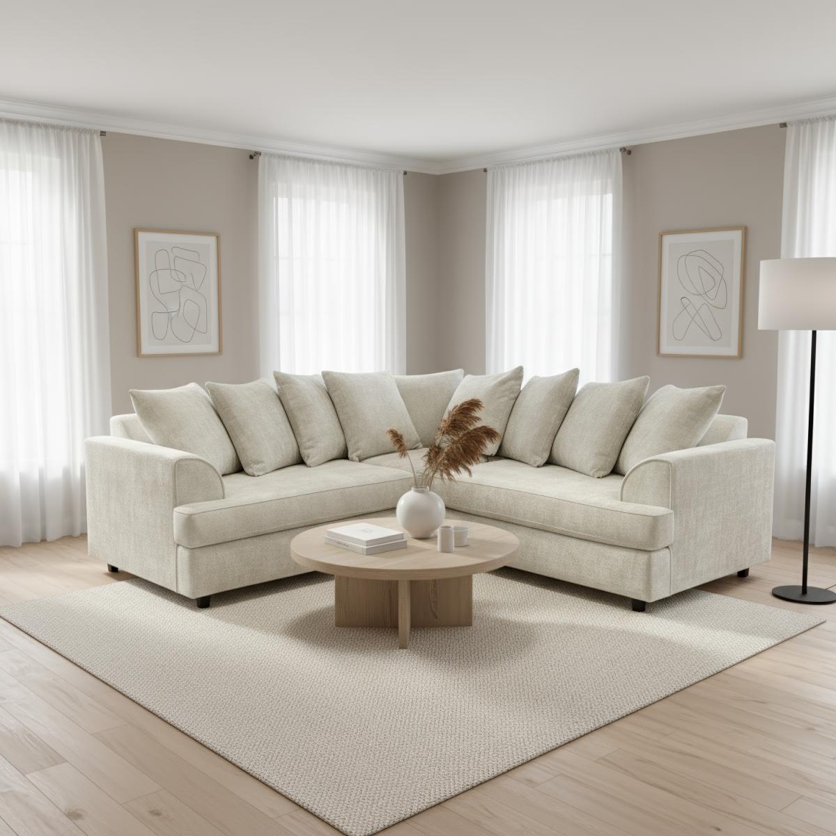 Ferguson Chenille Corner Sofa brings inviting comfort to your home with its ultra-soft chenille fabric and generously deep seating. Designed for effortless relaxation, it features plush fibre cushions, angular arms and a supportive low backperfect for unwinding in style. A beautifully fresh take on the Ferguson, this White edition brings a clean, uplifting feel while keeping the sofas signature softness and inviting comfort.