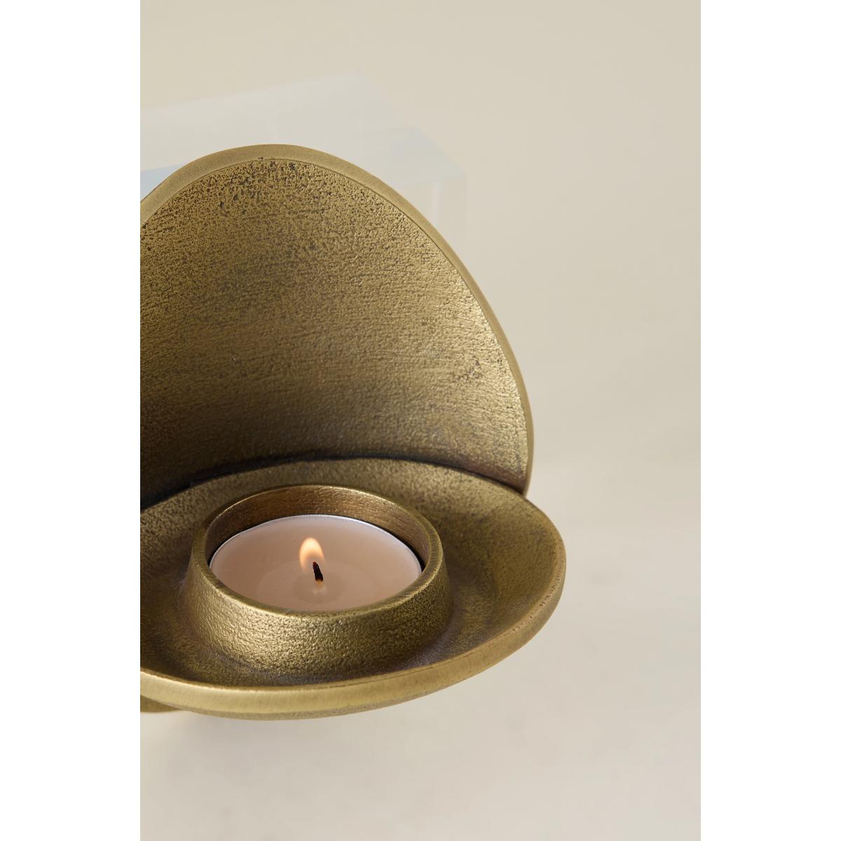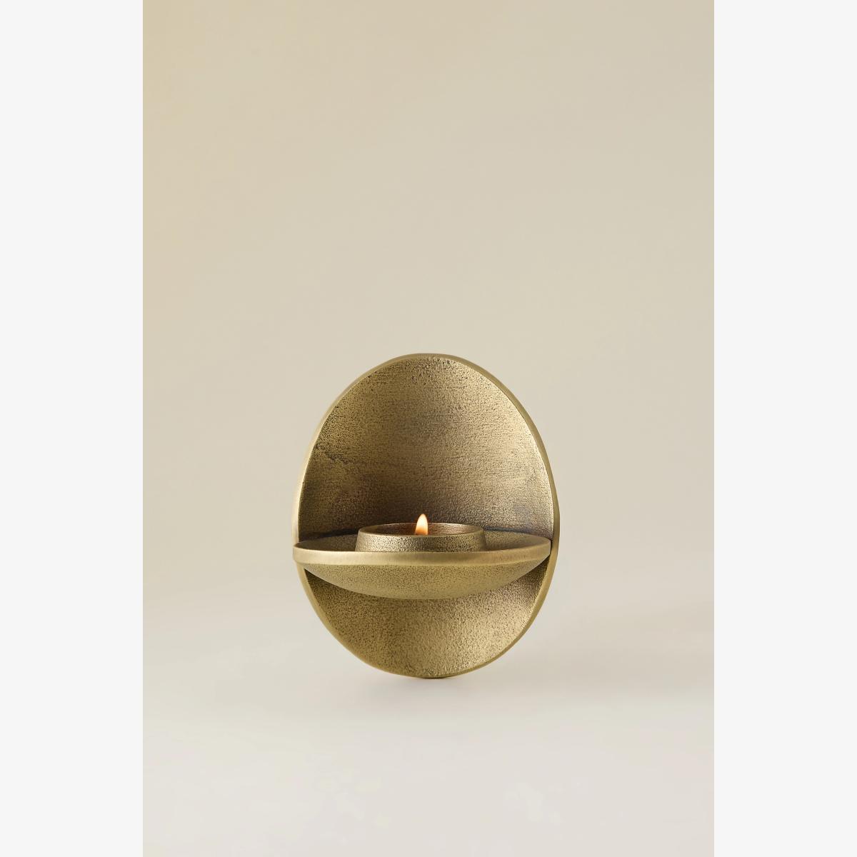 * By Ferm Living * 100% Recycled Casted Aluminium with brass finish * Wall-mounted * Fits standard tealight candle * Wipe clean with damp cloth; avoid abrasive cleaners * Imported