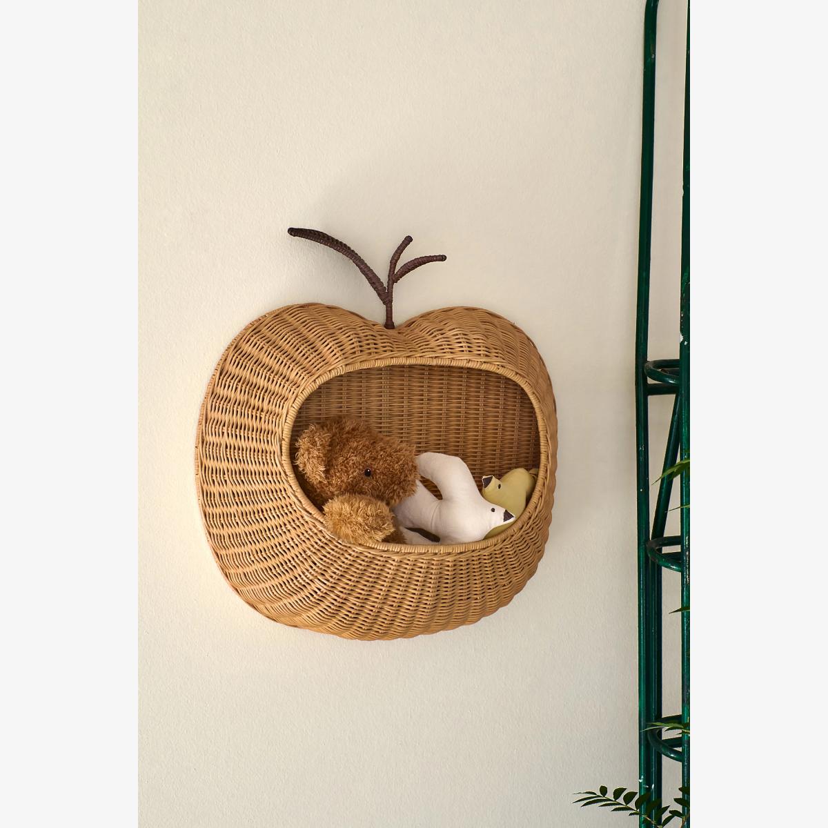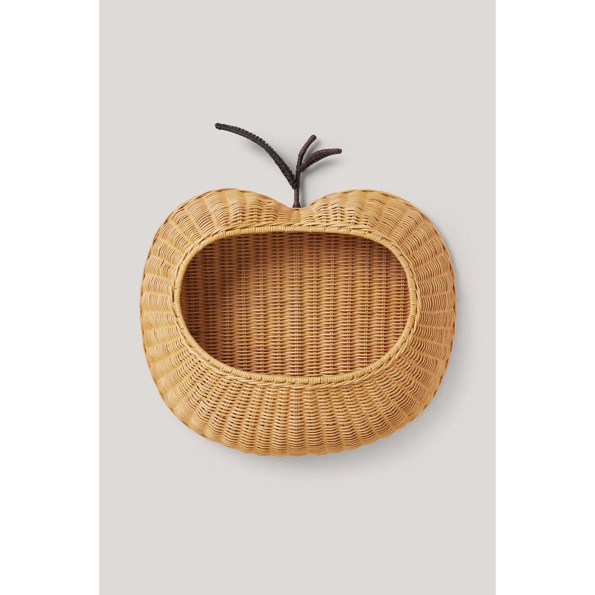 Meticulously crafted from durable rattan and shaped to a whimsical apple, this wall basket is a fun storage solution, perfect for books, toys, or other small items. * By Ferm Living * Braided Rattan; Iron structure * Wipe with damp cloth * Imported