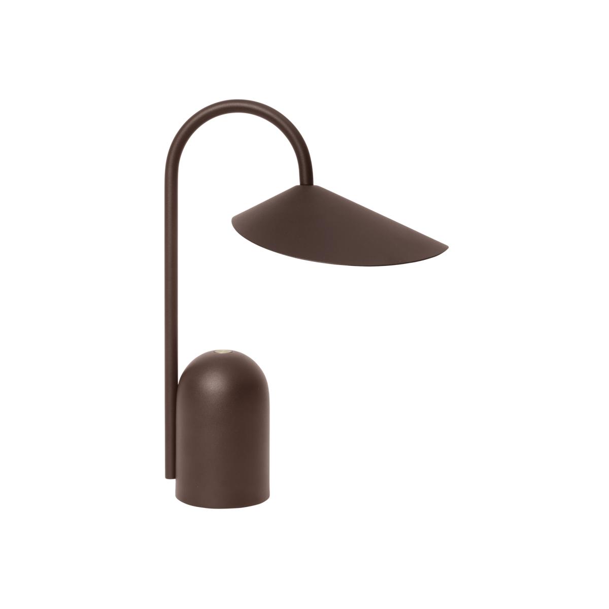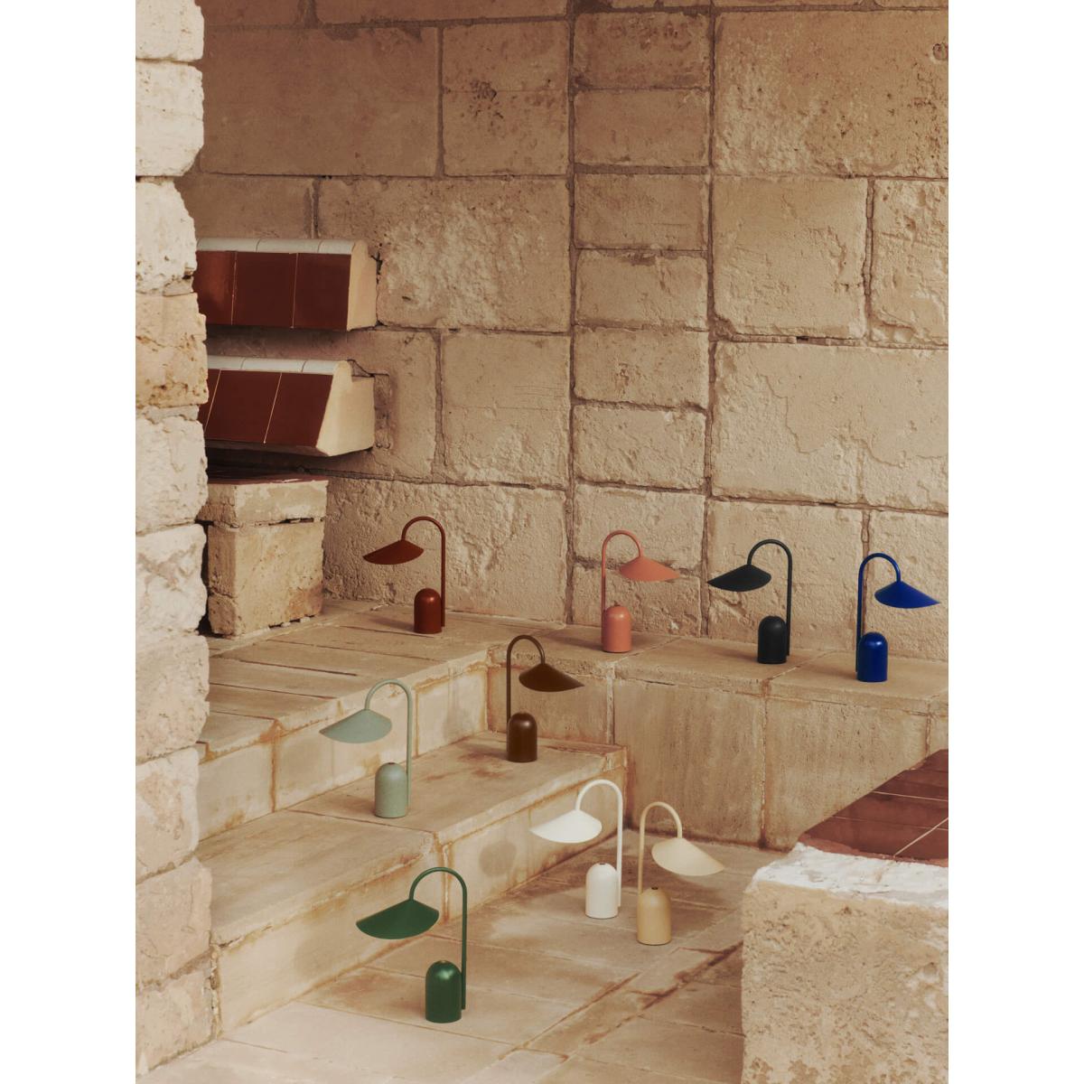Arum portable lamp from Ferm Living is made of powder-coated iron and aluminium, giving it a smooth and durable finish. This small, portable LED lamp is rechargeable via USB-C, allowing you to create a cosy atmosphere wherever you are. The lamp has a petal-shaped shade that appears to float from the lamp base, providing an elegant balance. It also has a three-step touch dimmer for adjustable ambient lighting.