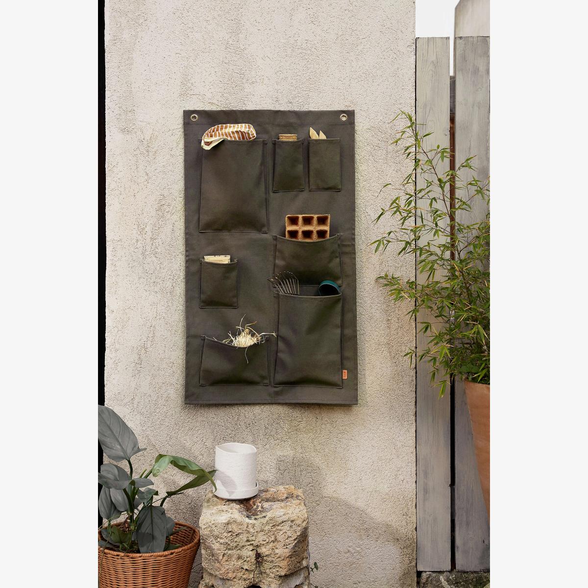 Made entirely from waxed, GOTS certified, organic cotton, the Bark Garden Wall Storage features several asymmetrical pockets in practical sizes, presenting a both beautiful and functional storage solution, perfect for hanging in your garden shed or greenhouse. * By Ferm Living * 100% GOTS certified organic cotton, waxed * Two eyelets for hanging * Wipe with a damp cloth * Imported