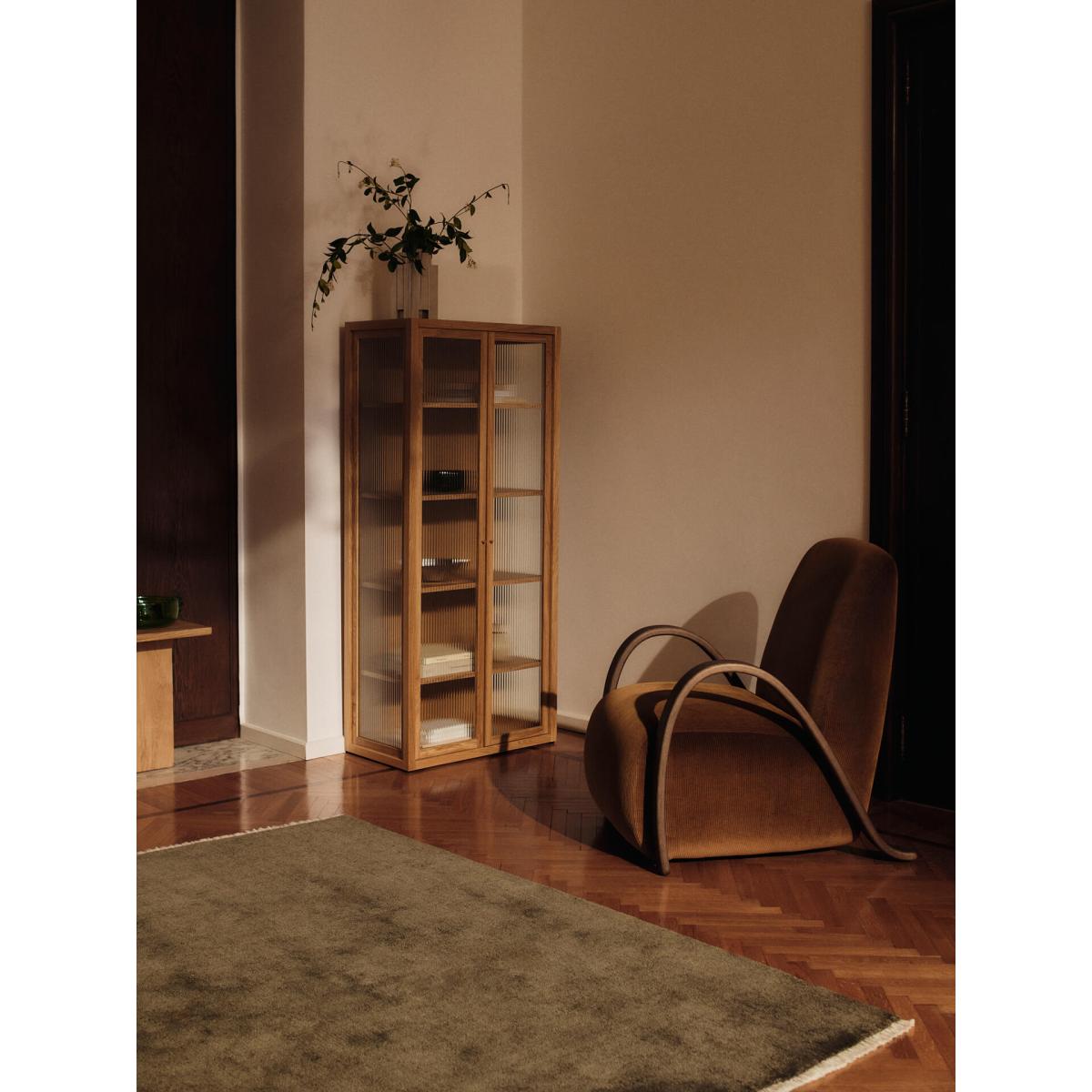 Buur lounge chair devoré velvet from Ferm Living is an armchair upholstered in devoré velvet that creates a beautiful pattern play in the light. The comfortable proportions make the chair a favorite for relaxing. The armrest in stained oak veneer provides a warm contrast. Stain-repellent treatment makes the fabric easy to keep looking good.